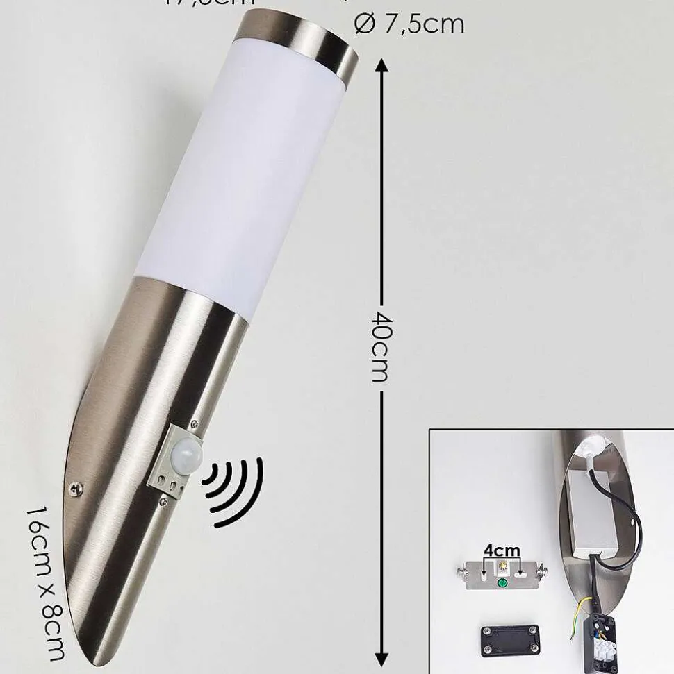 Applique Murale D’Exterieur Norburg Acier Inoxydable, 1 Lumiere, Detecteur De Mouvement