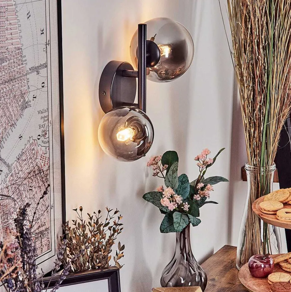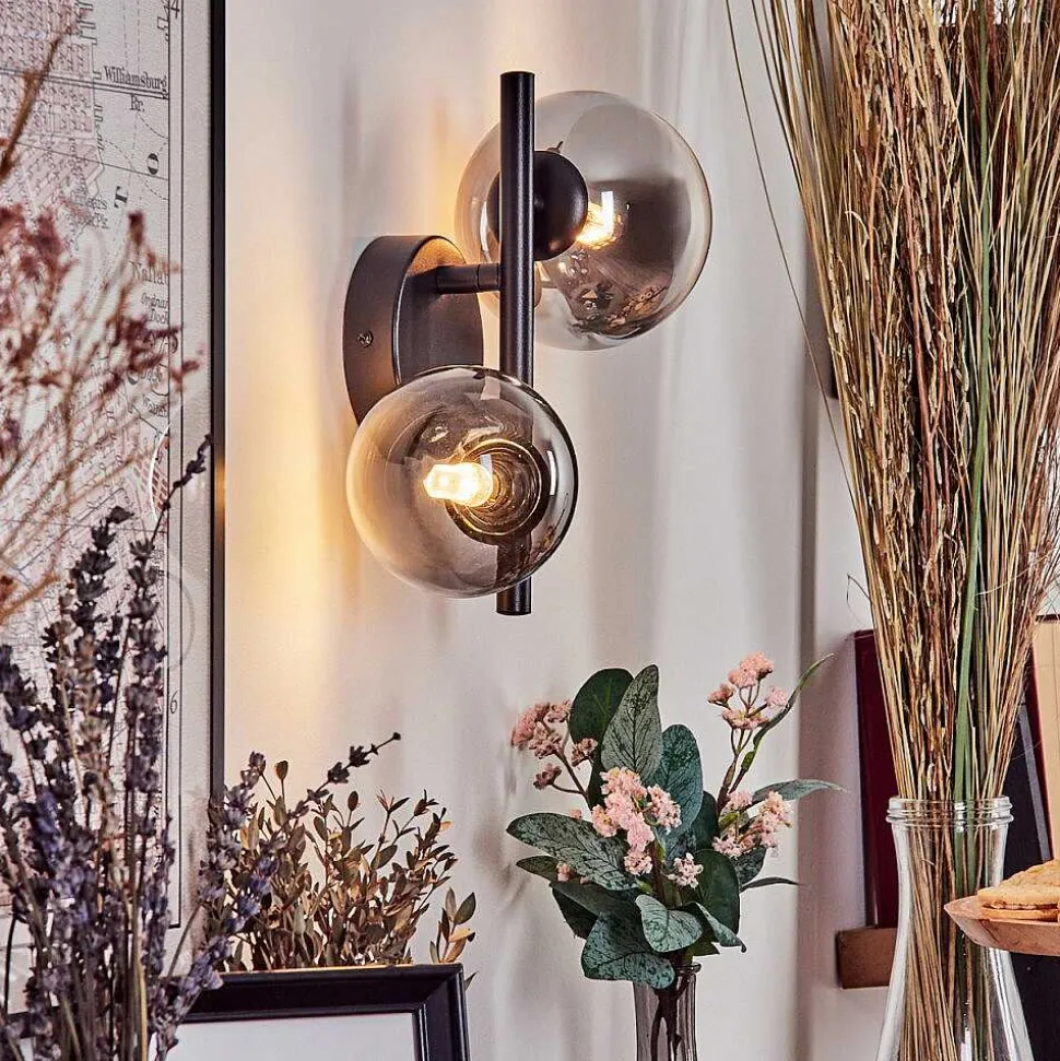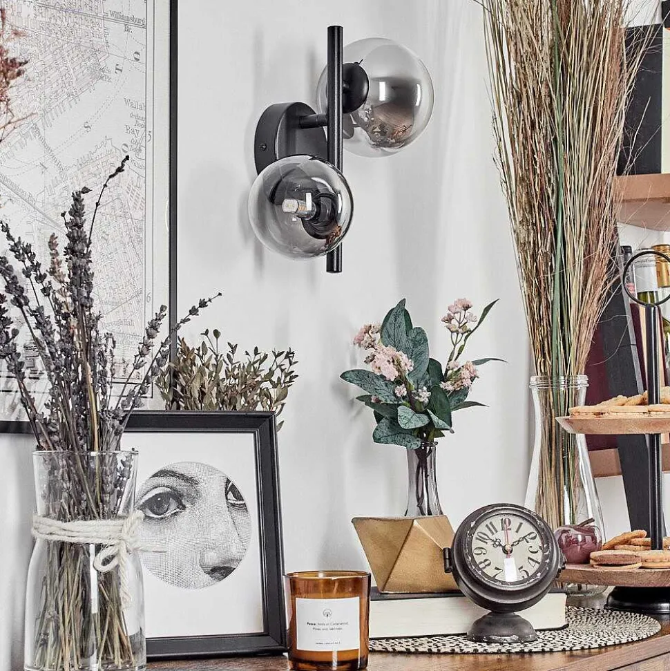 Applique Murale – Verre 10 Cm, 12 Cm Chehalis Noir, 2 Lumieres