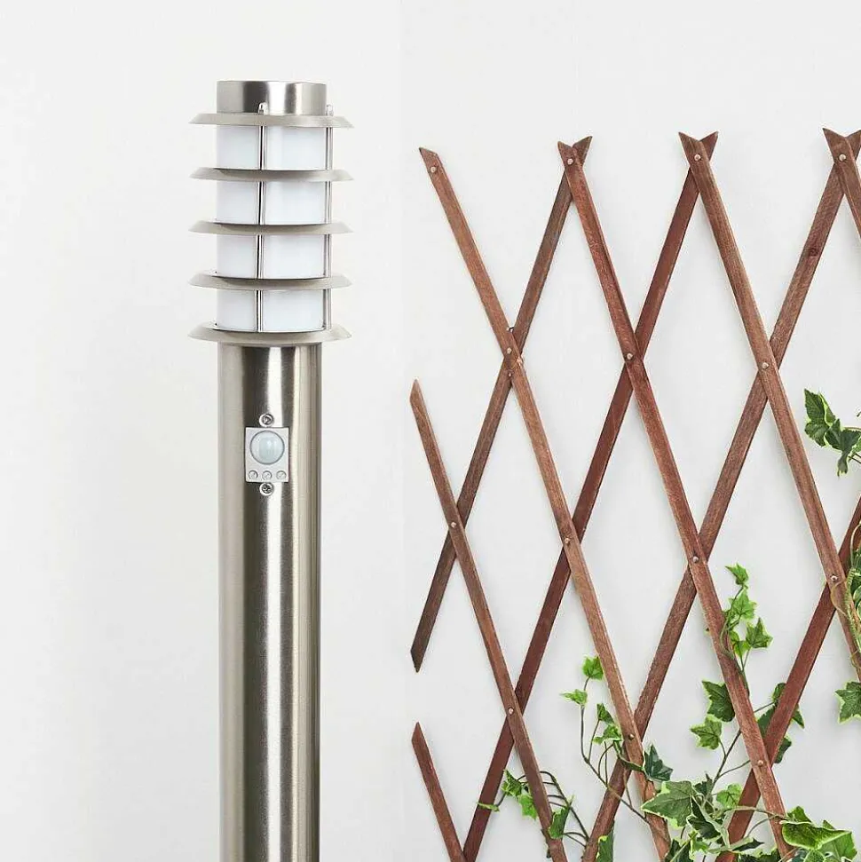 Borne Lumineuse Tunes Nickel Mat, 1 Lumiere, Detecteur De Mouvement