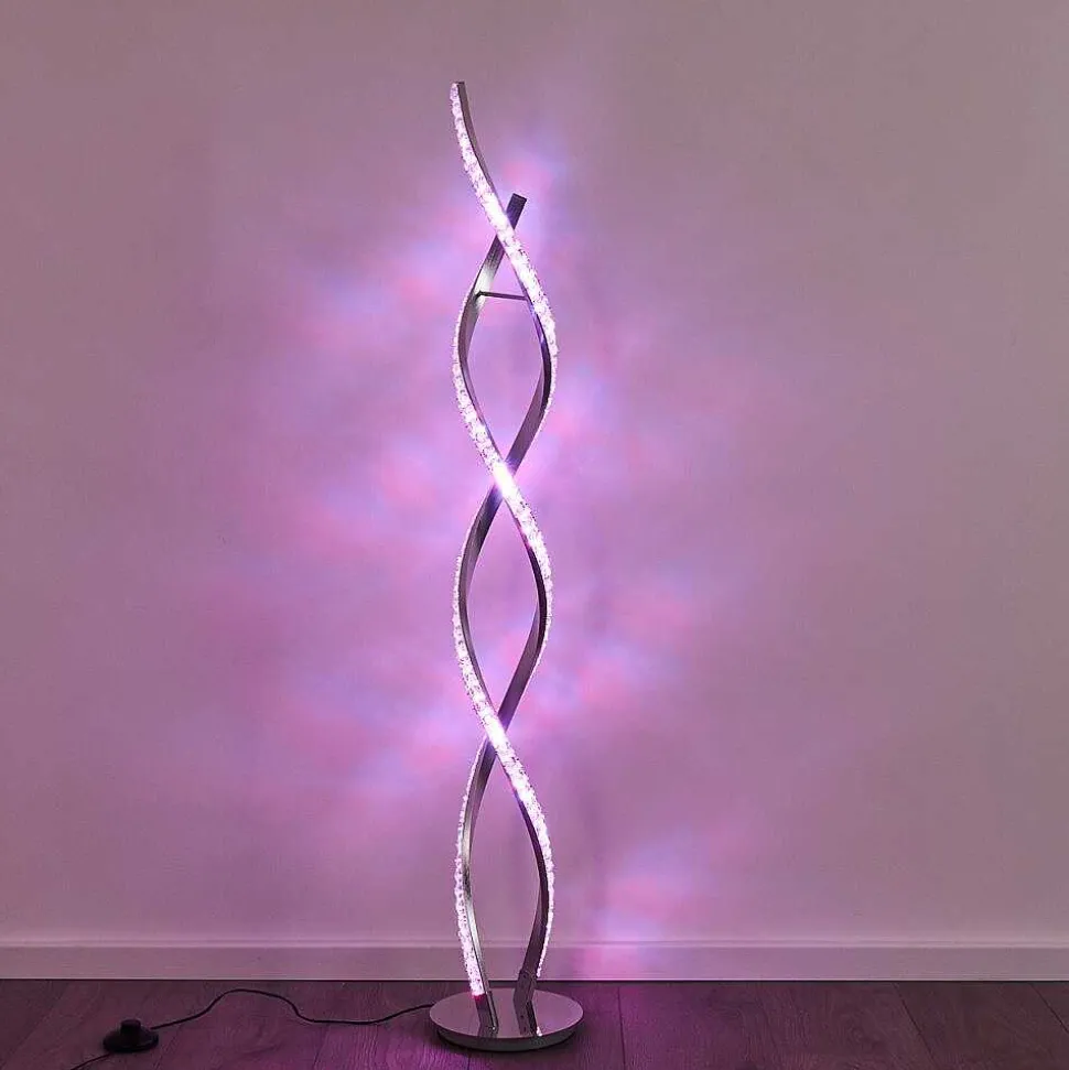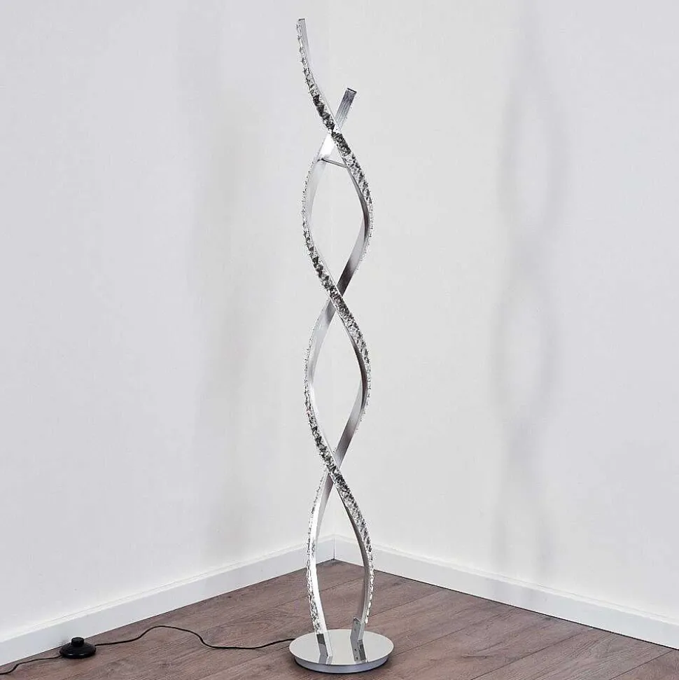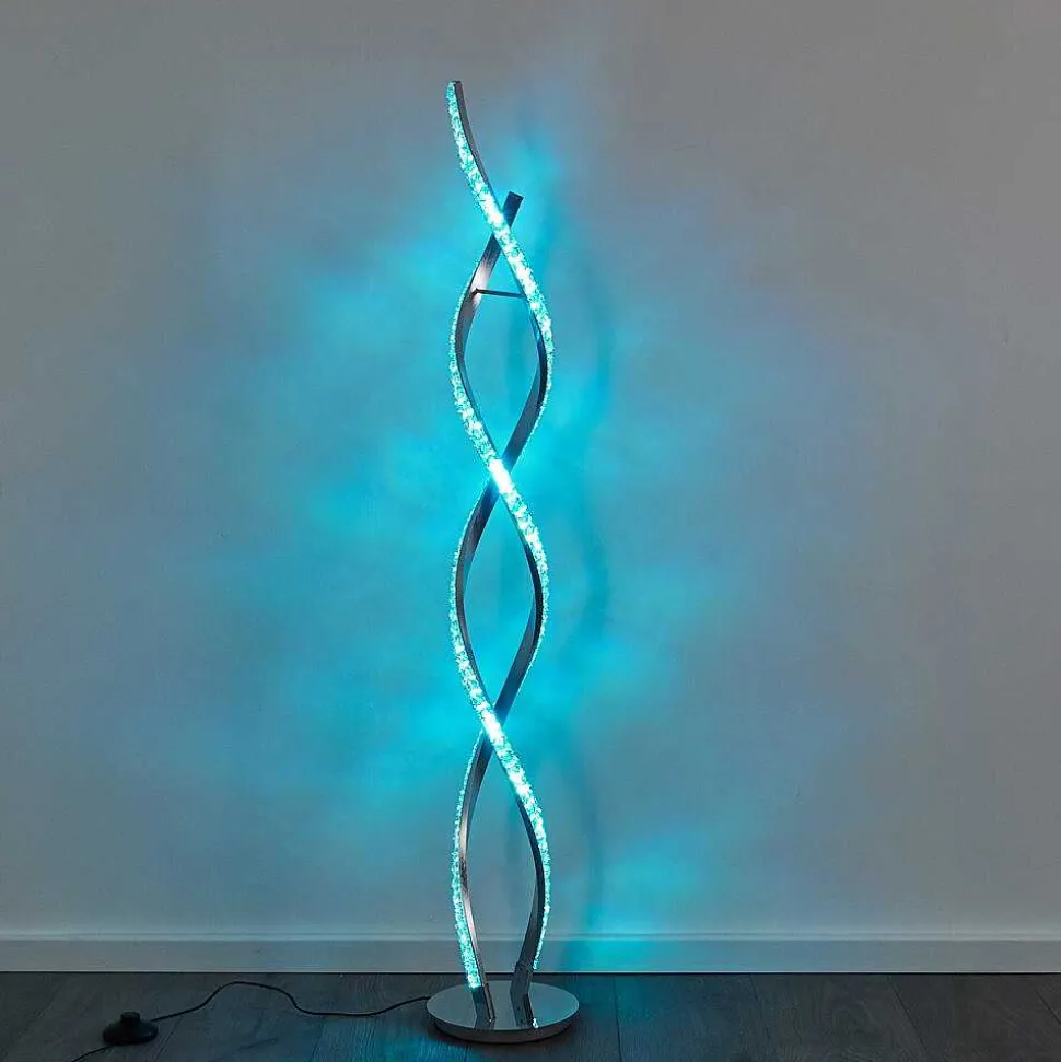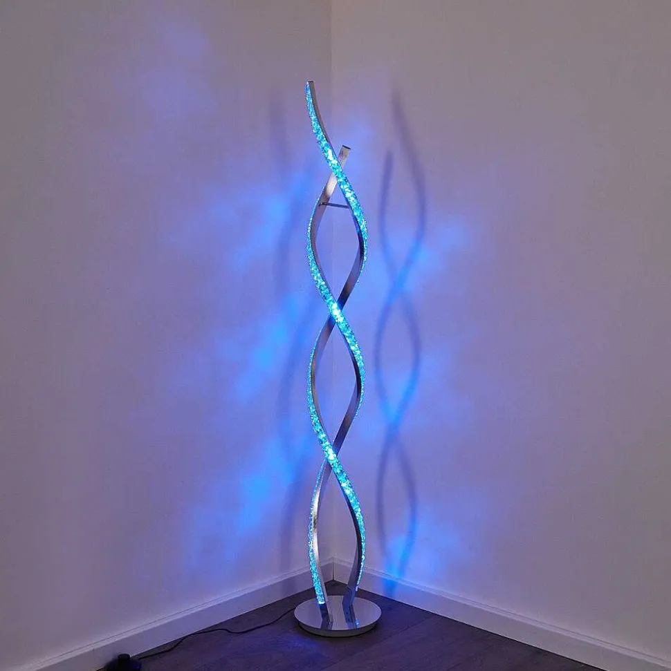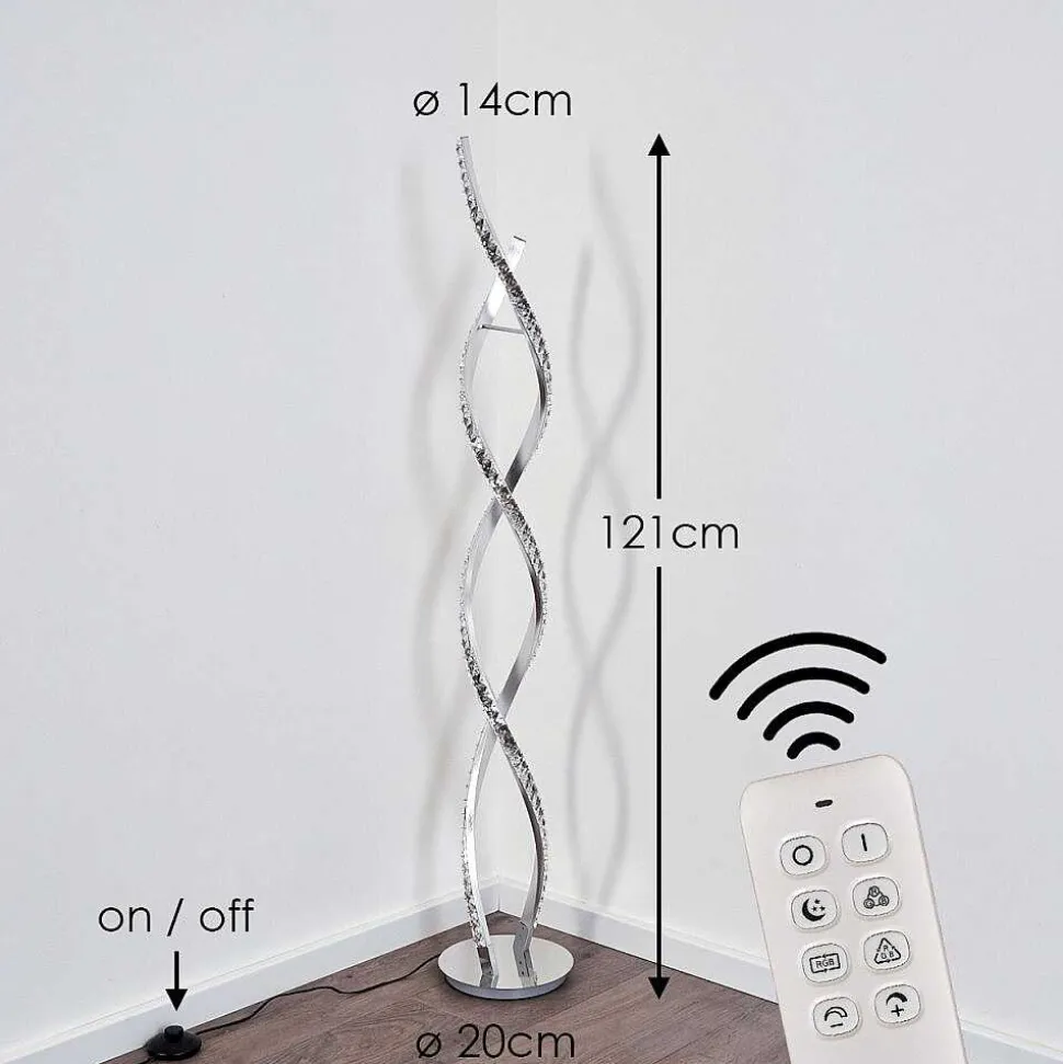 Lampadaire Assuan Led Chrome, 1 Lumiere, Telecommandes, Changeur De Couleurs