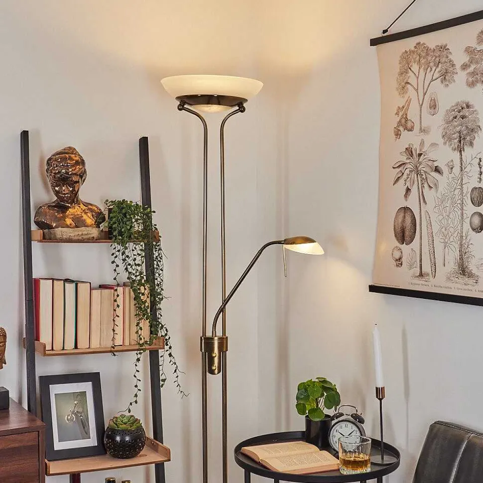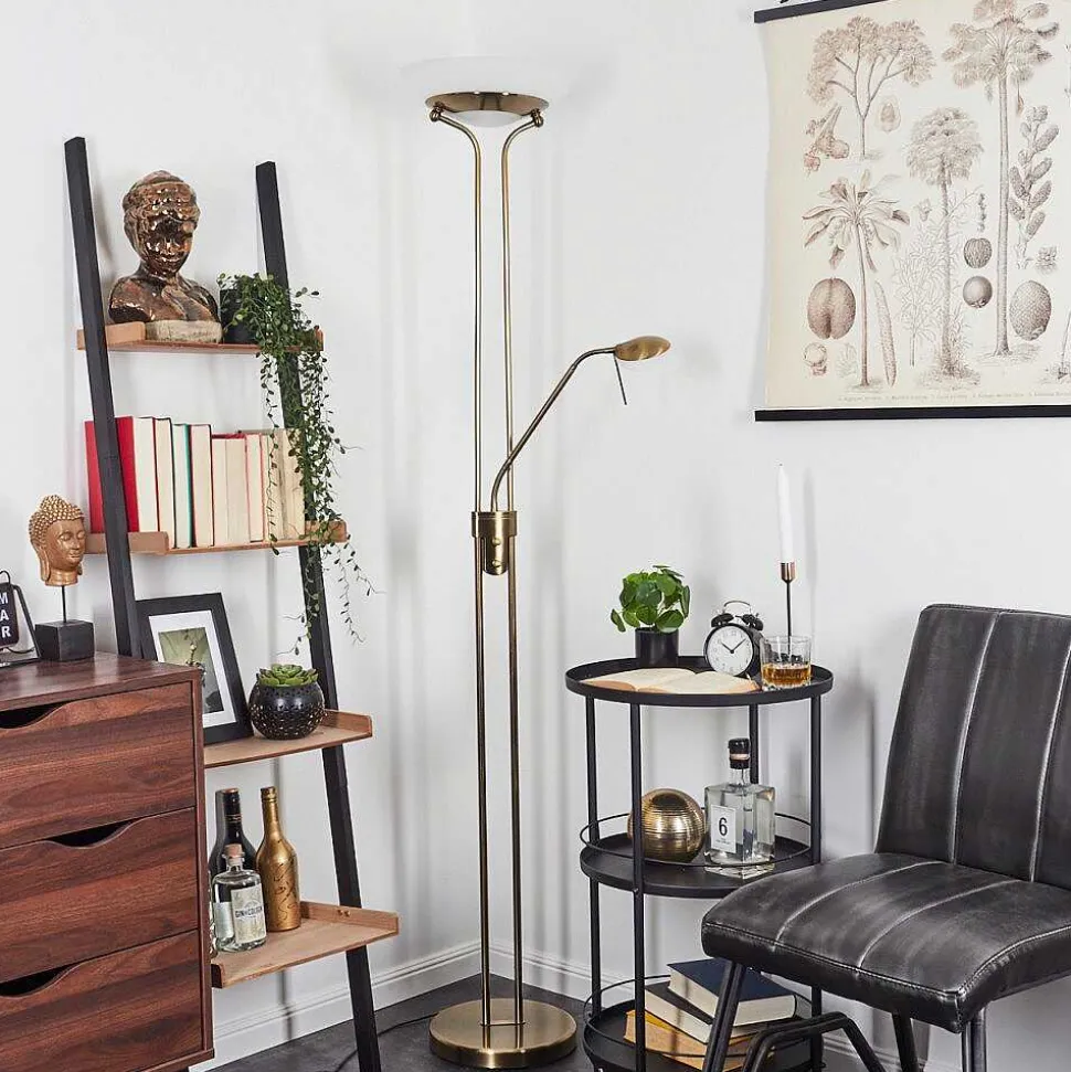 Lampadaire Biot Led Vieux Laiton, 2 Lumieres