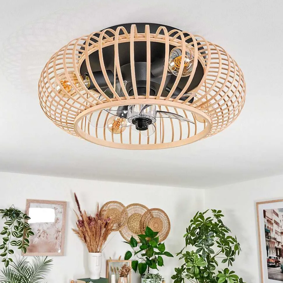 Plafonnier Salmi Led Couleur Bois, Noir, Blanc, 1 Lumiere, Telecommandes