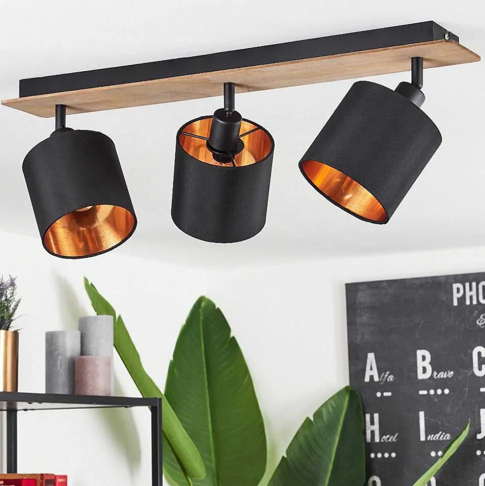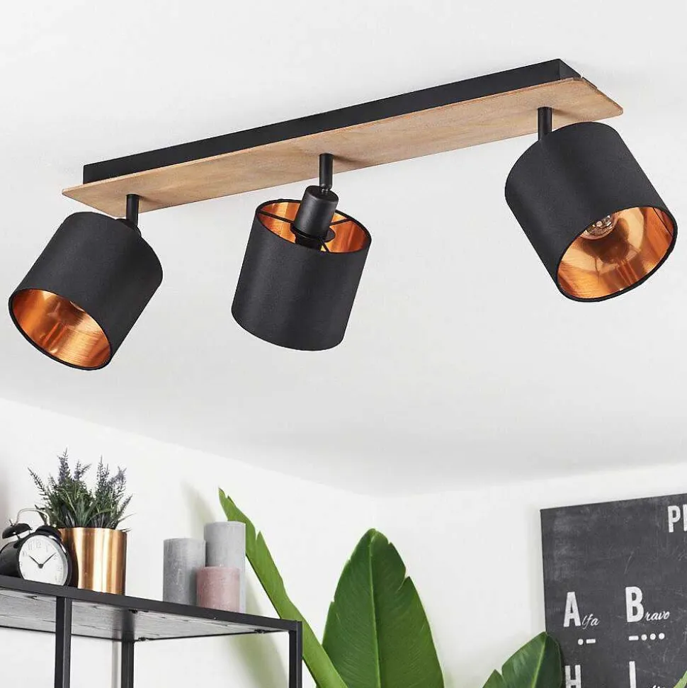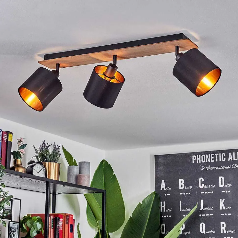 Plafonnier Salmi Led Couleur Bois, Noir, Blanc, 1 Lumiere, Telecommandes
