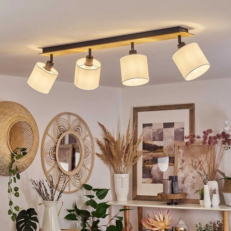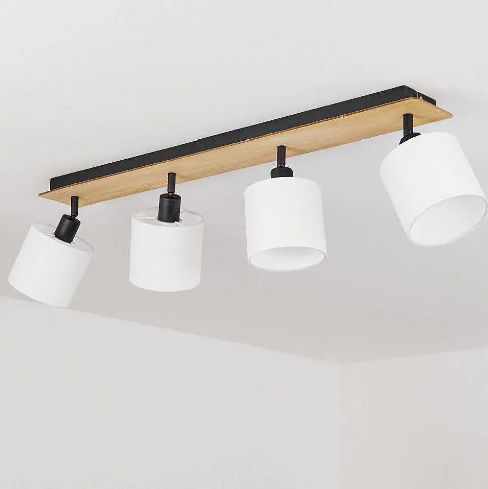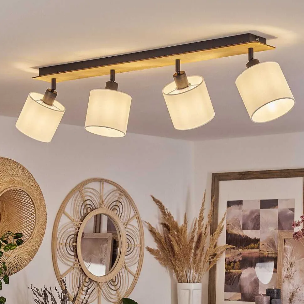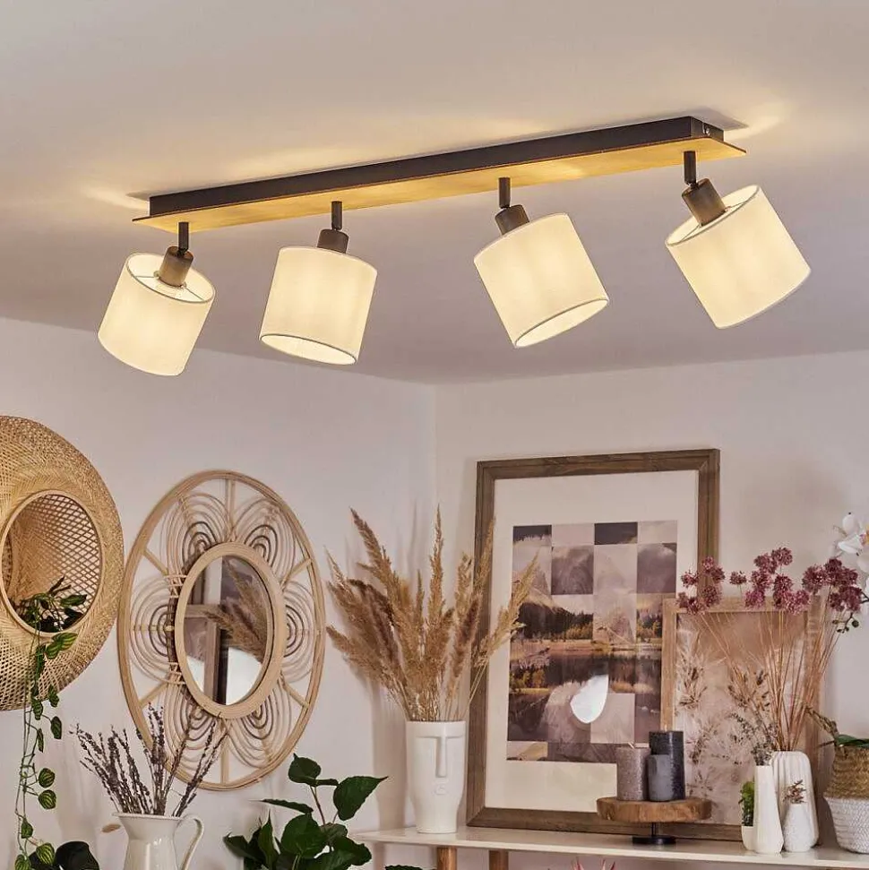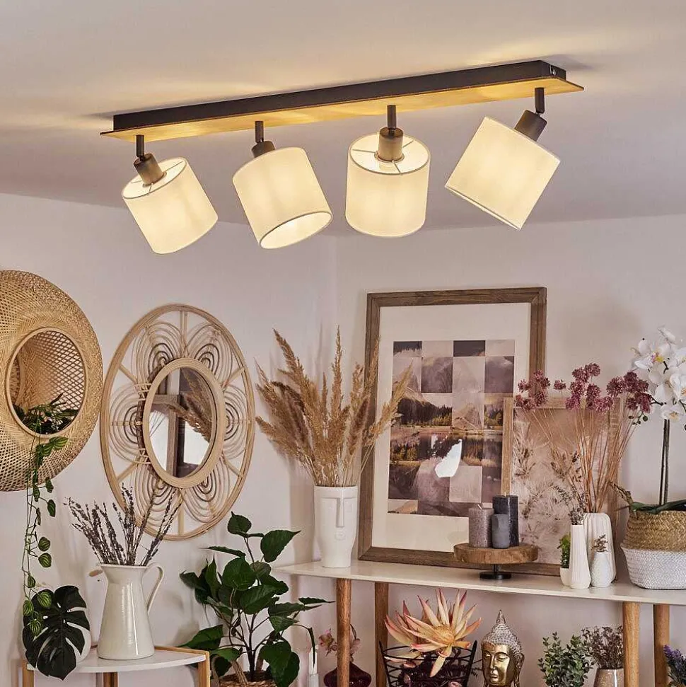 Plafonnier Salmi Led Brun, Couleur Bois, Noir, 1 Lumiere, Telecommandes