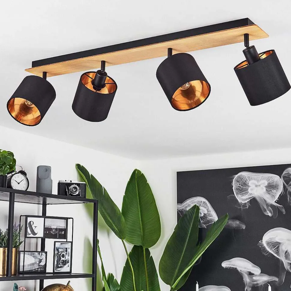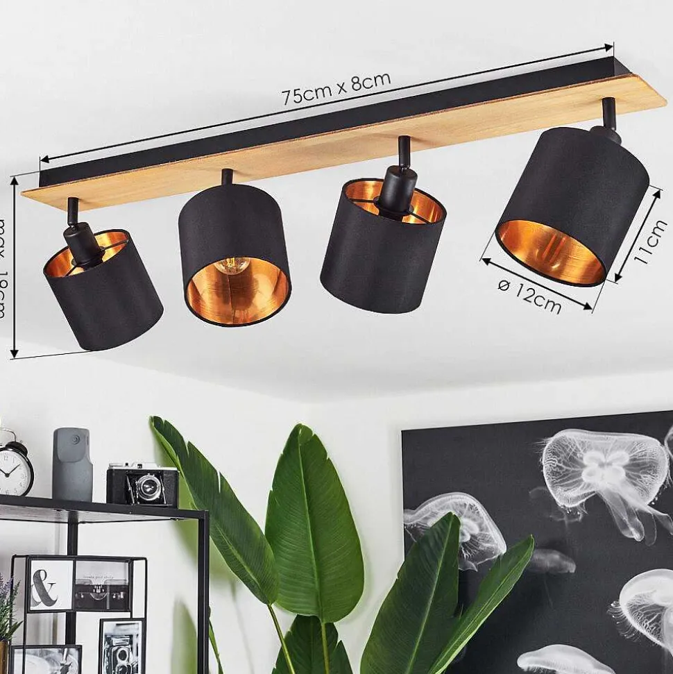 Plafonnier Salmi Led Couleur Bois, Noir, Blanc, 1 Lumiere, Telecommandes