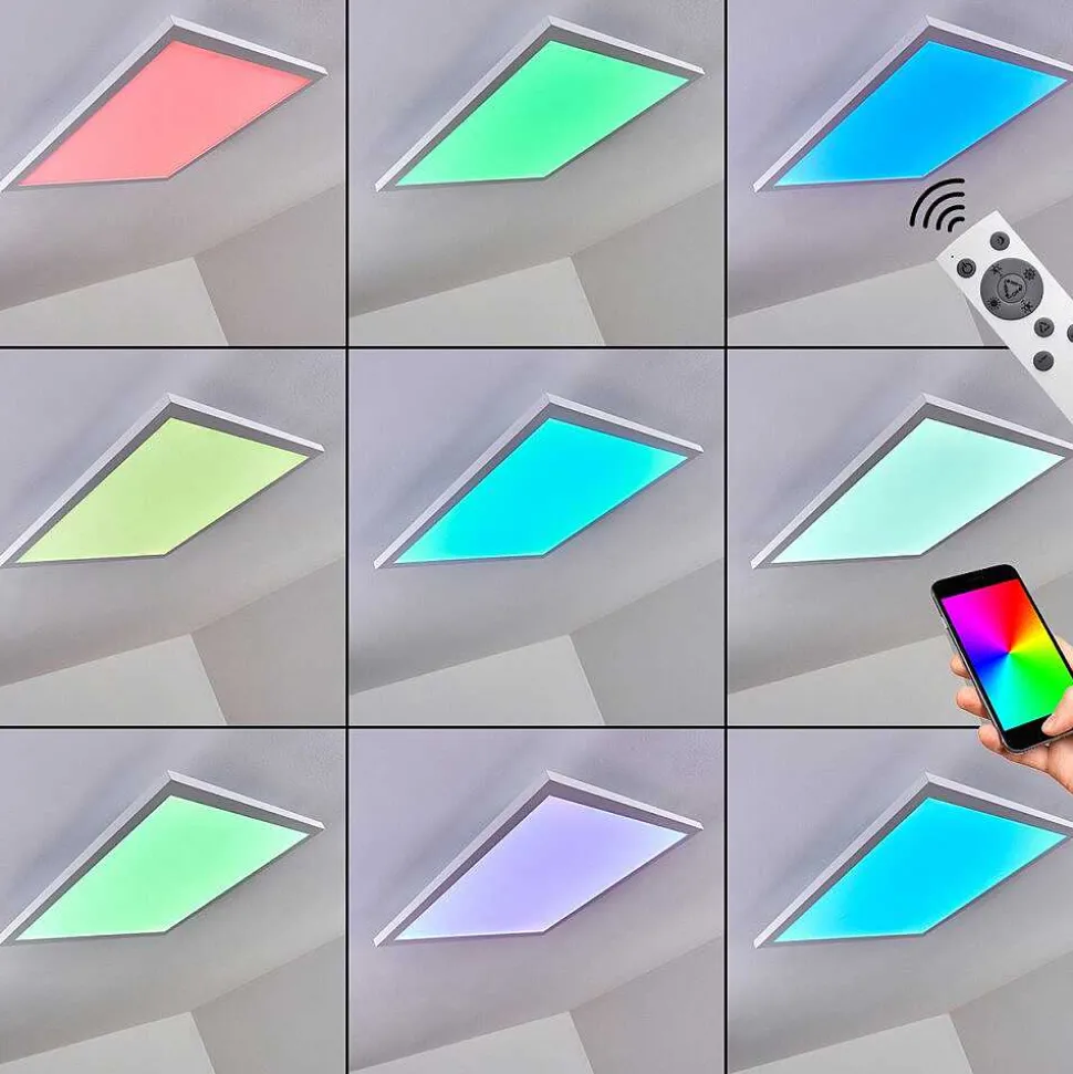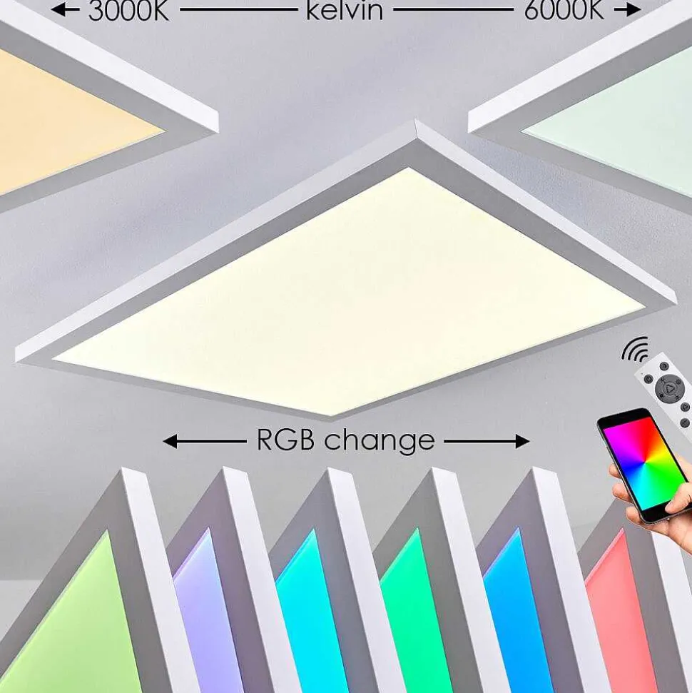 Plafonnier Salmi Led Brun, Couleur Bois, Noir, 1 Lumiere, Telecommandes