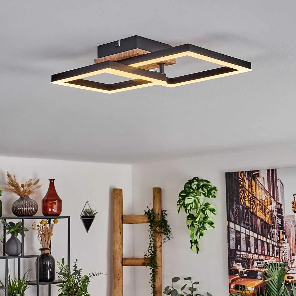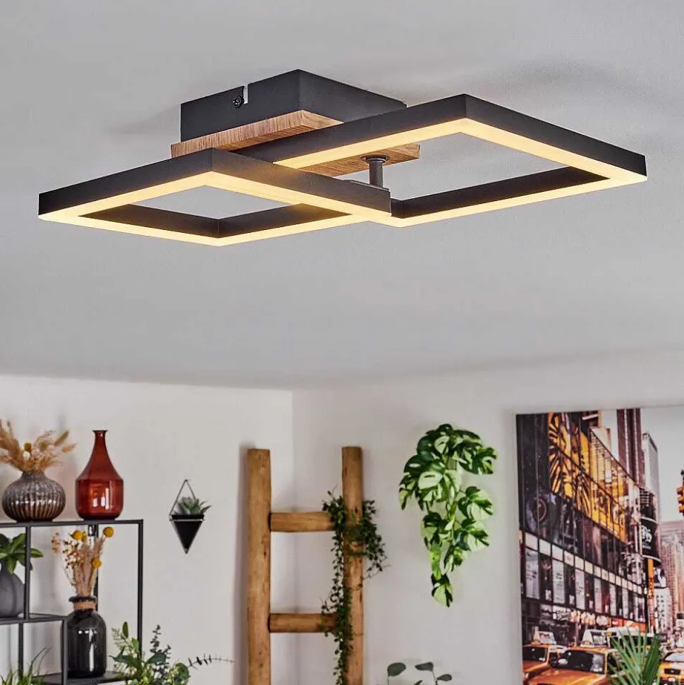 Plafonnier Salmi Led Couleur Bois, Noir, Blanc, 1 Lumiere, Telecommandes