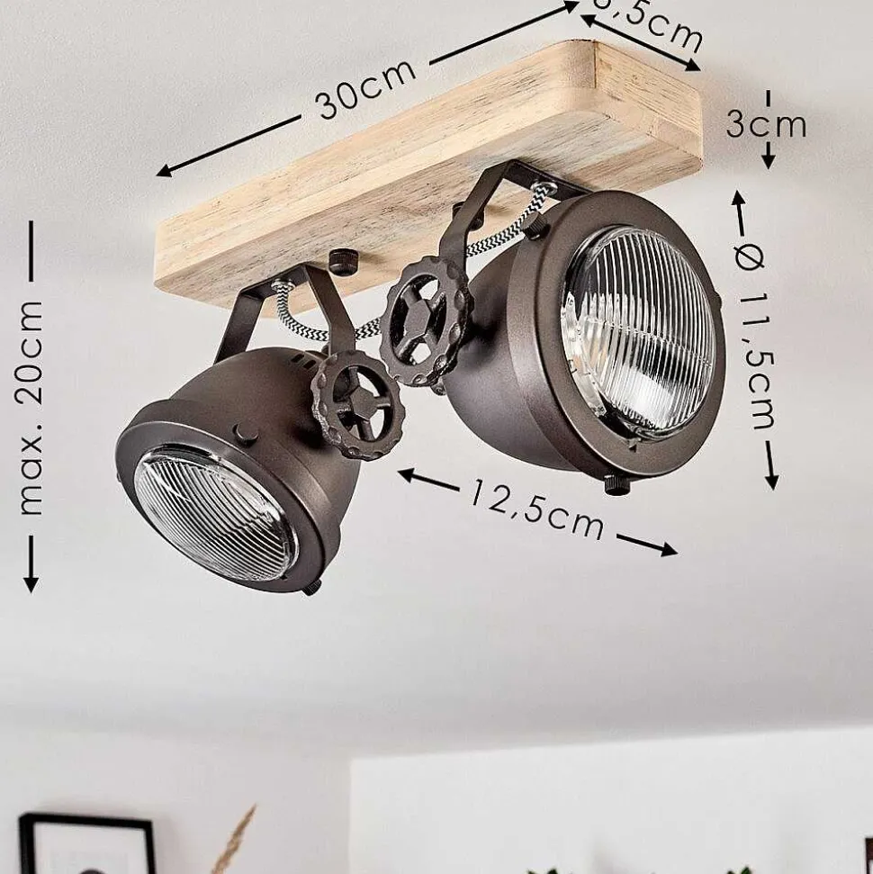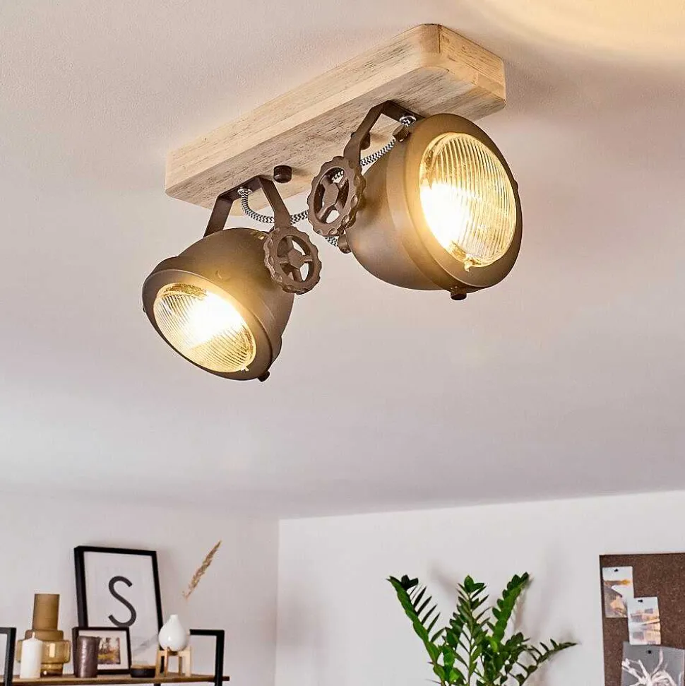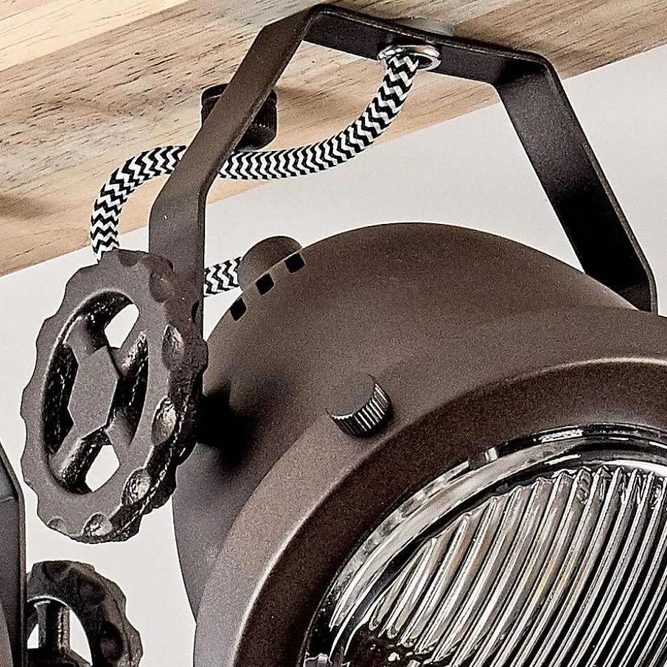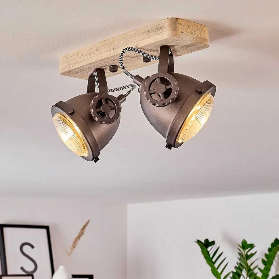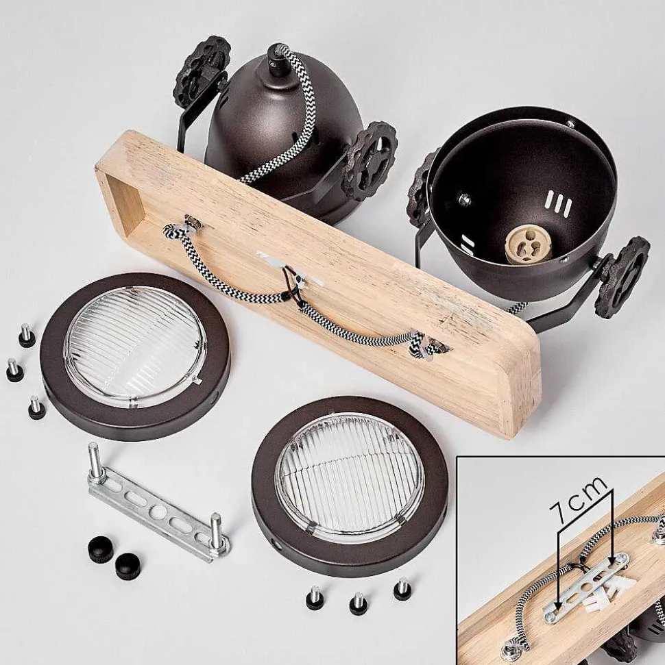 Plafonnier Salmi Led Brun, Couleur Bois, Noir, 1 Lumiere, Telecommandes