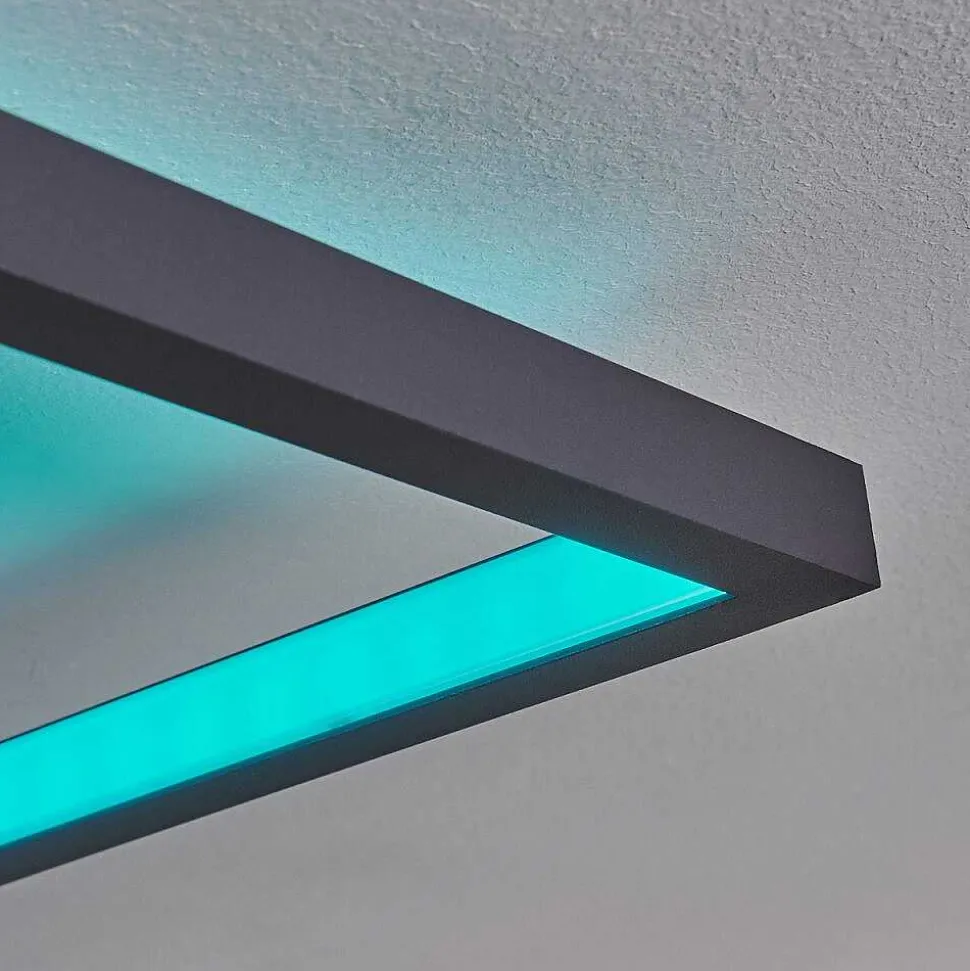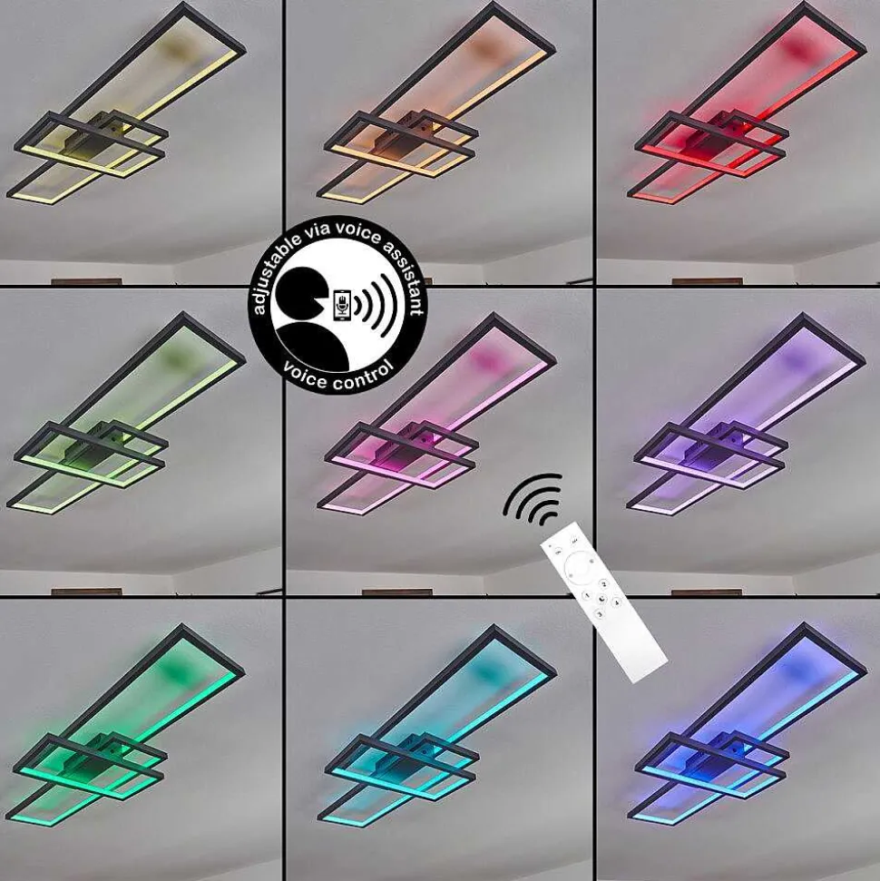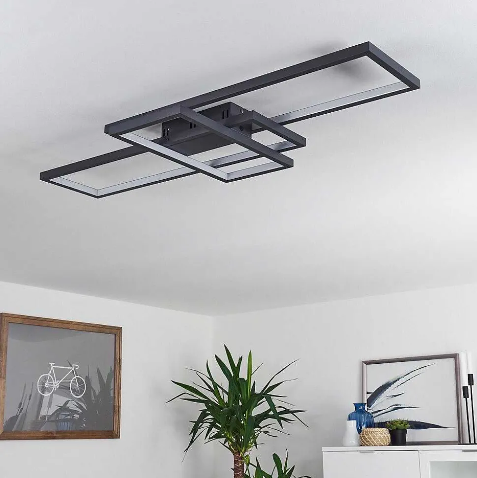 Plafonnier Salmi Led Brun, Couleur Bois, Noir, 1 Lumiere, Telecommandes