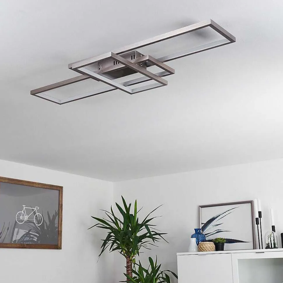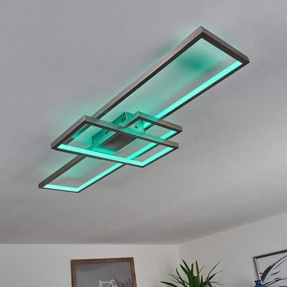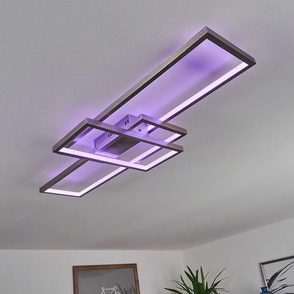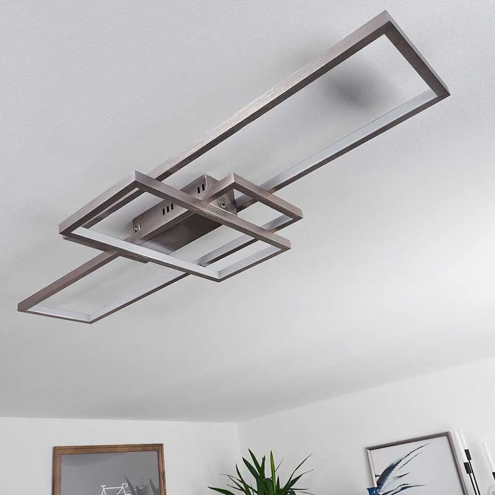 Plafonnier Salmi Led Brun, Couleur Bois, Noir, 1 Lumiere, Telecommandes
