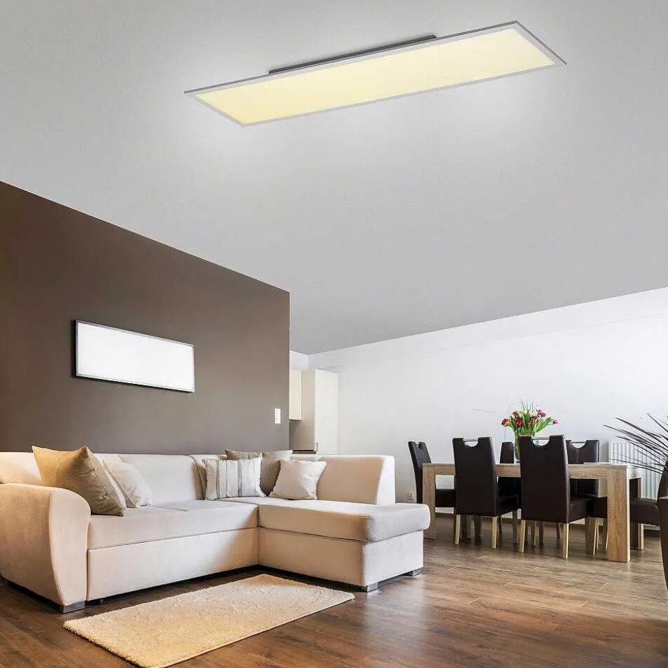 Plafonnier Paul Neuhaus Q-Inigo Led Acier Inoxydable, 2 Lumieres, Telecommandes