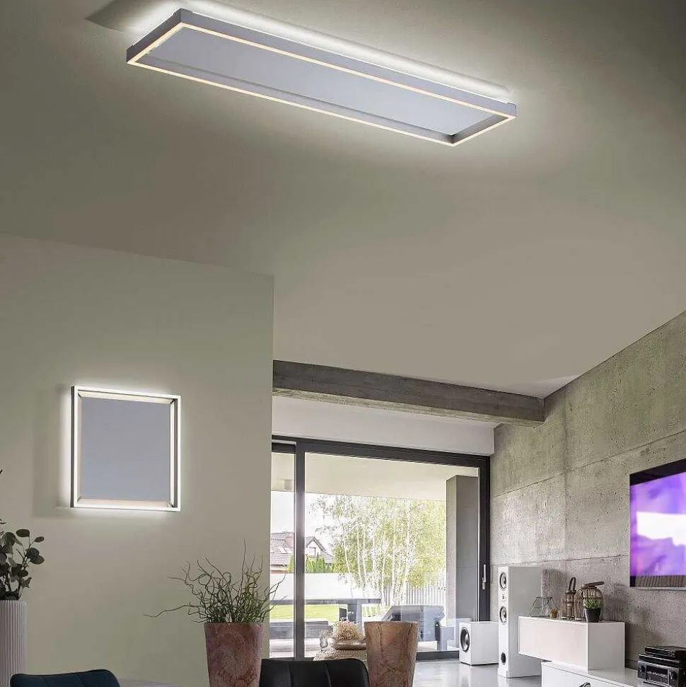 Plafonnier Paul Neuhaus Q-Inigo Led Acier Inoxydable, 2 Lumieres, Telecommandes