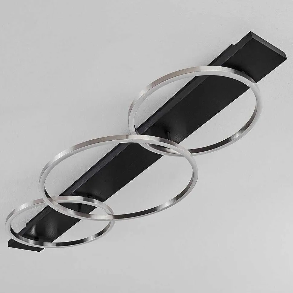 Plafonnier Salmi Led Couleur Bois, Noir, Blanc, 1 Lumiere, Telecommandes