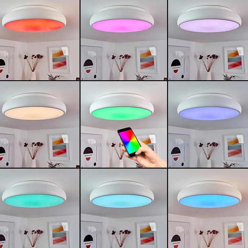 Plafonnier Rhone Led Blanc, 1 Lumiere, Changeur De Couleurs