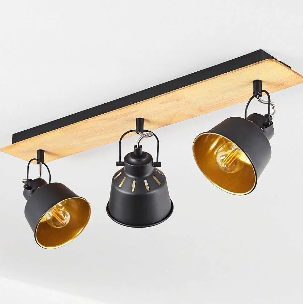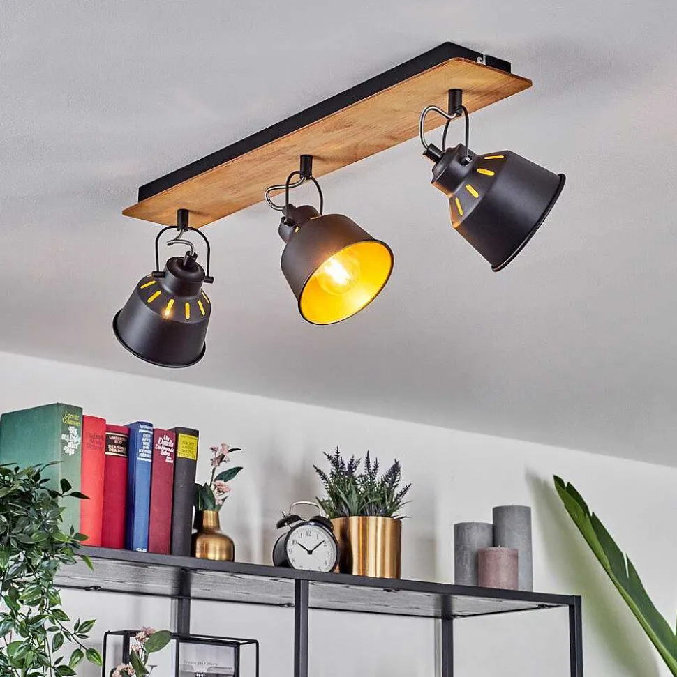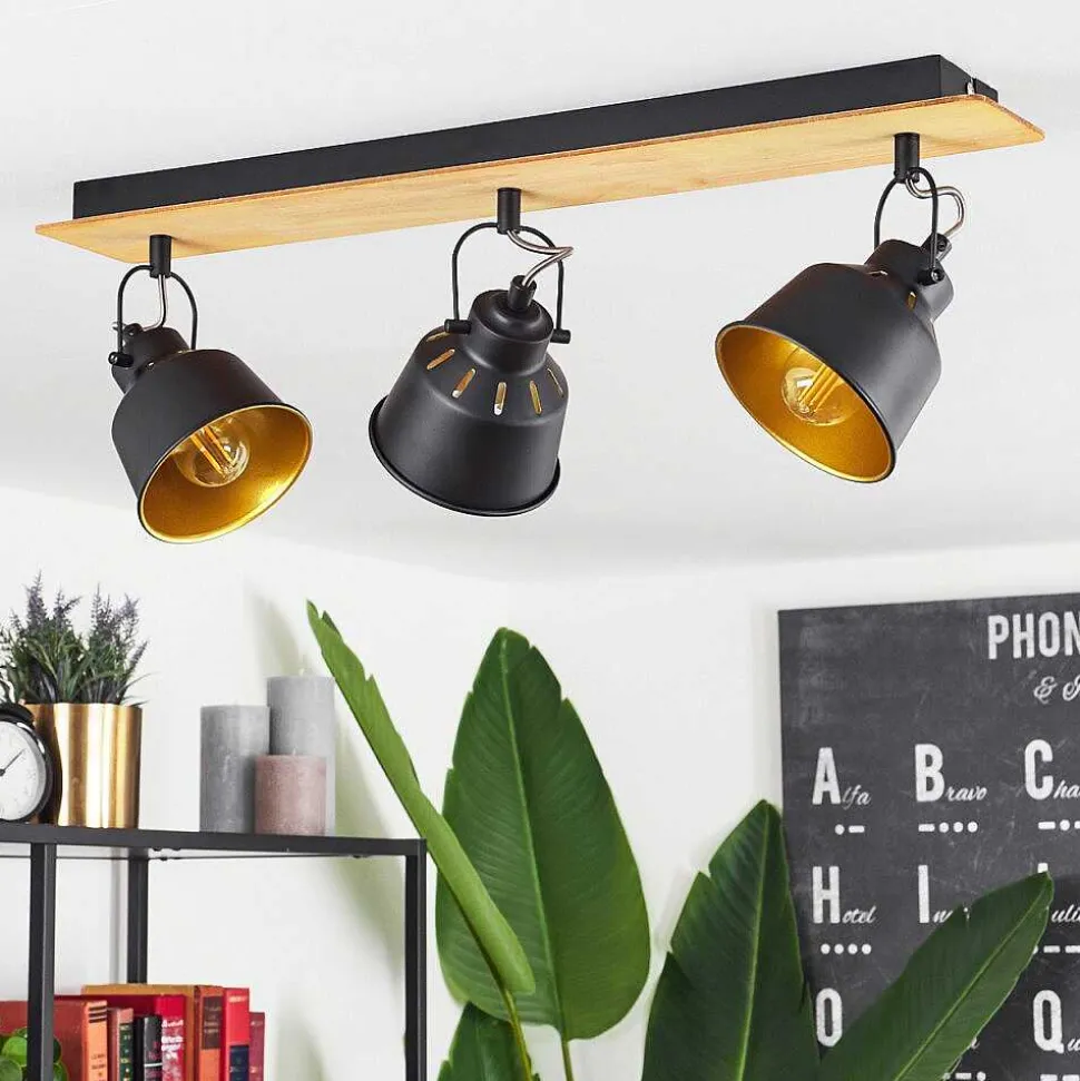 Plafonnier Salmi Led Brun, Couleur Bois, Noir, 1 Lumiere, Telecommandes