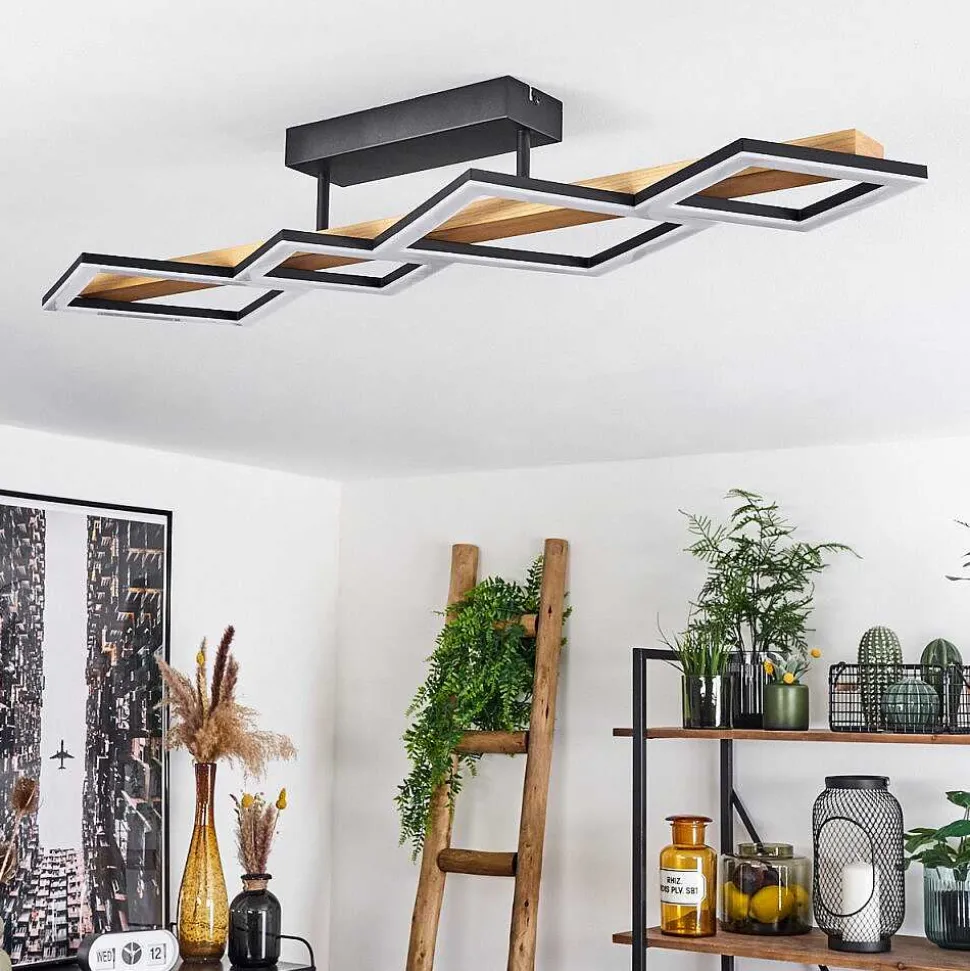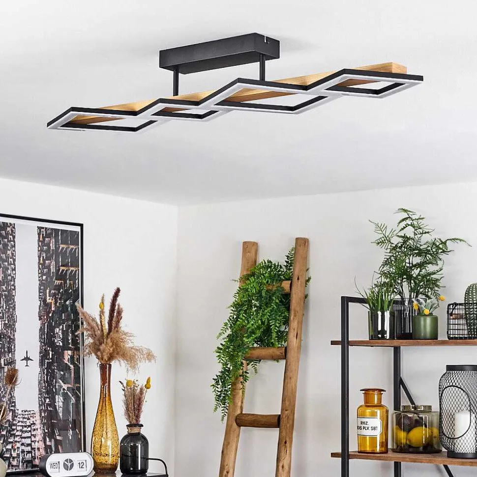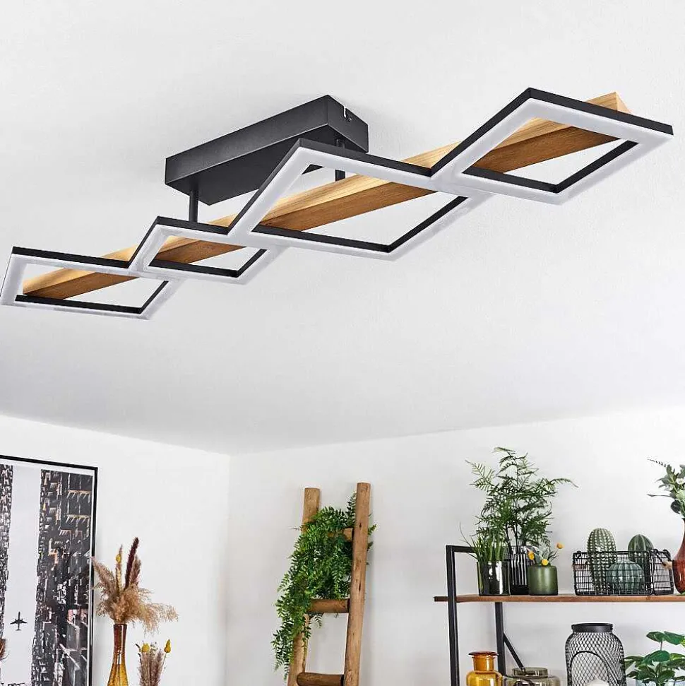 Plafonnier Salmi Led Brun, Couleur Bois, Noir, 1 Lumiere, Telecommandes