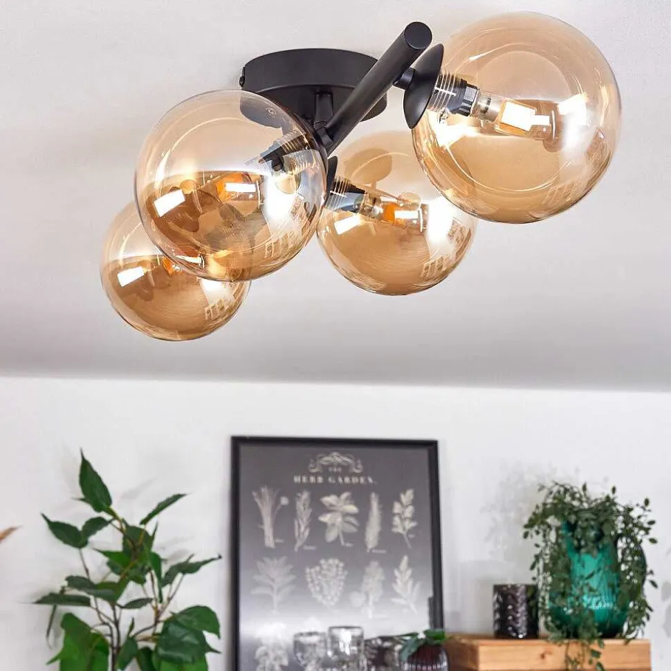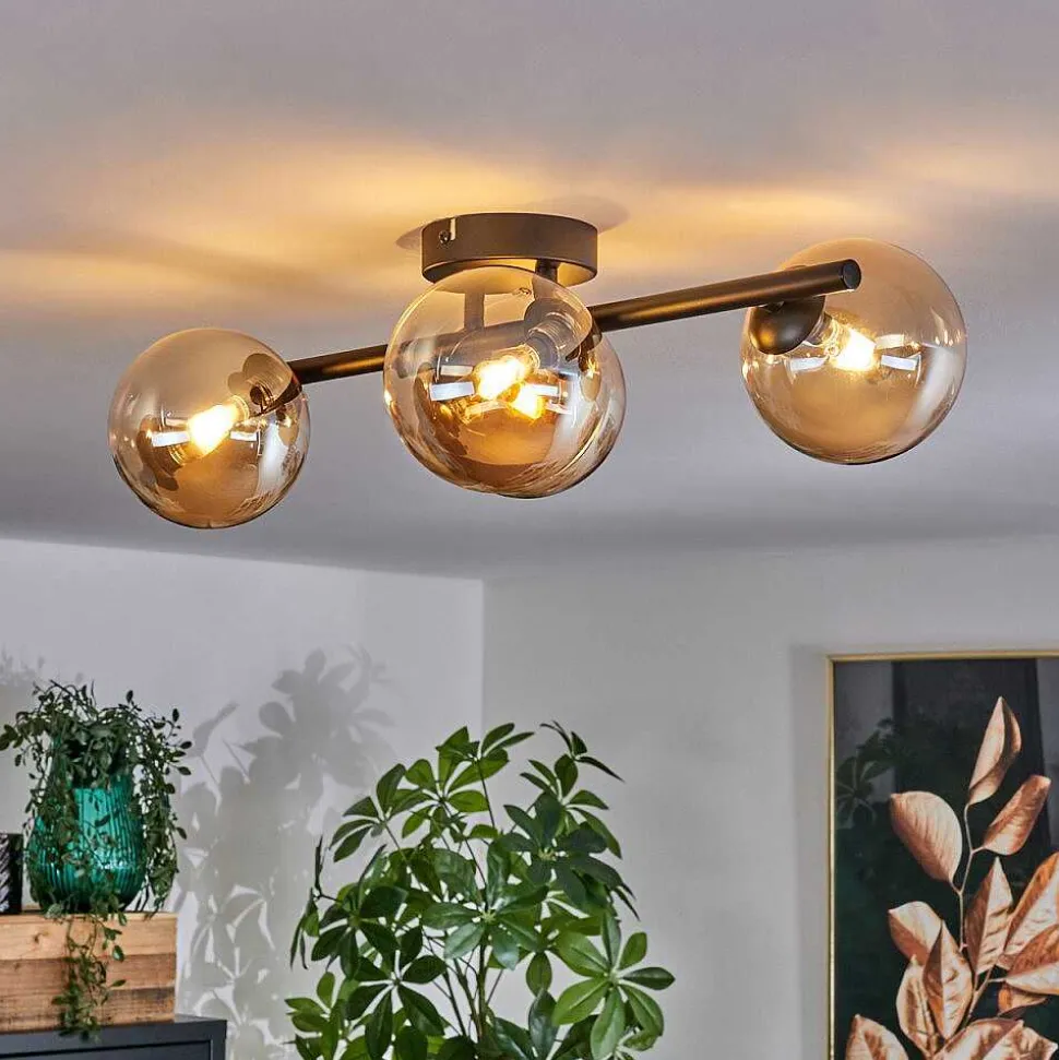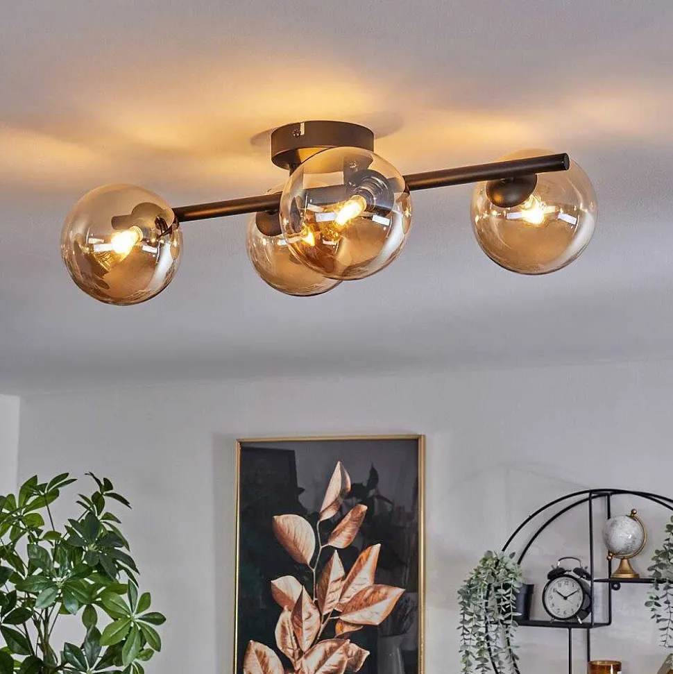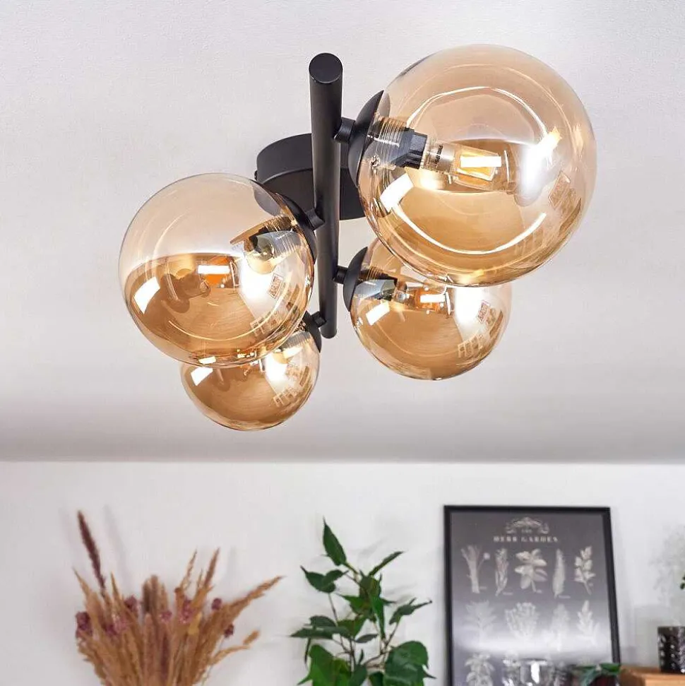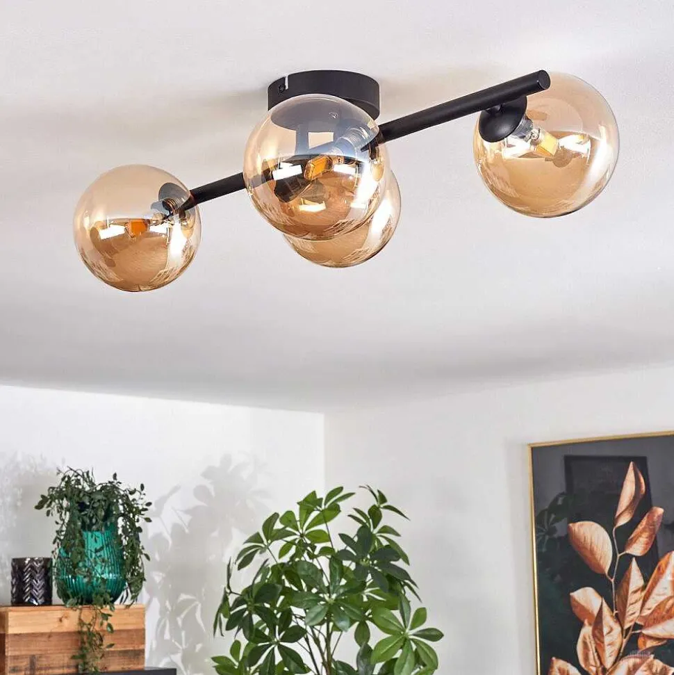 Plafonnier Salmi Led Brun, Couleur Bois, Noir, 1 Lumiere, Telecommandes