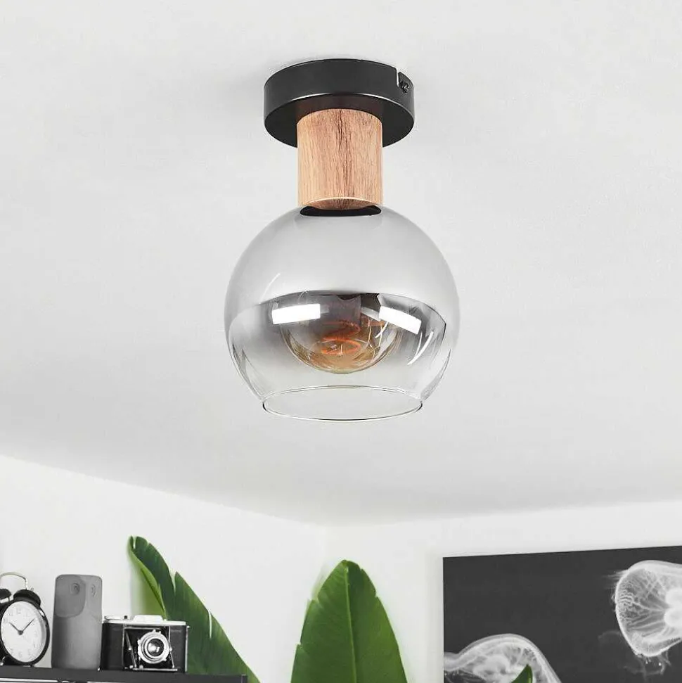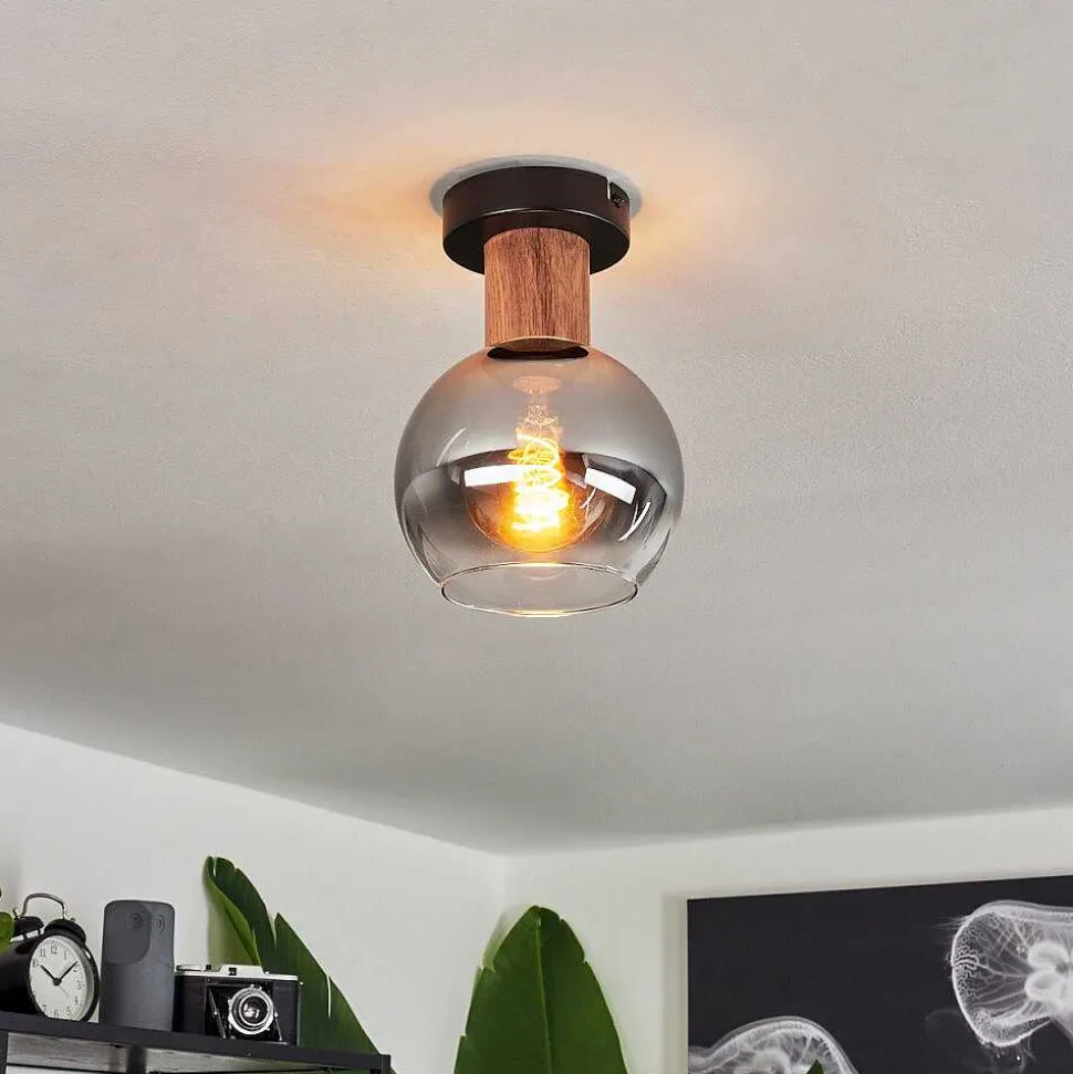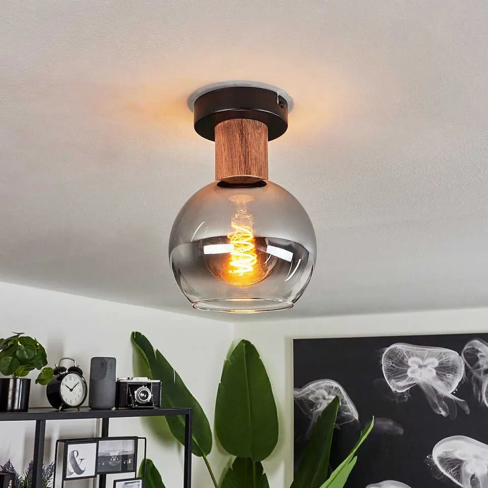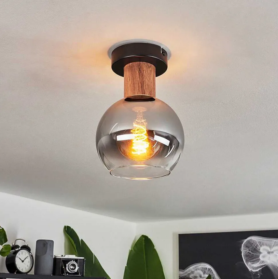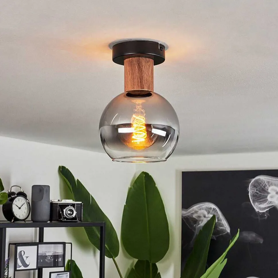 Plafonnier Vouhet Brun, Couleur Bois, Noir, 1 Lumiere