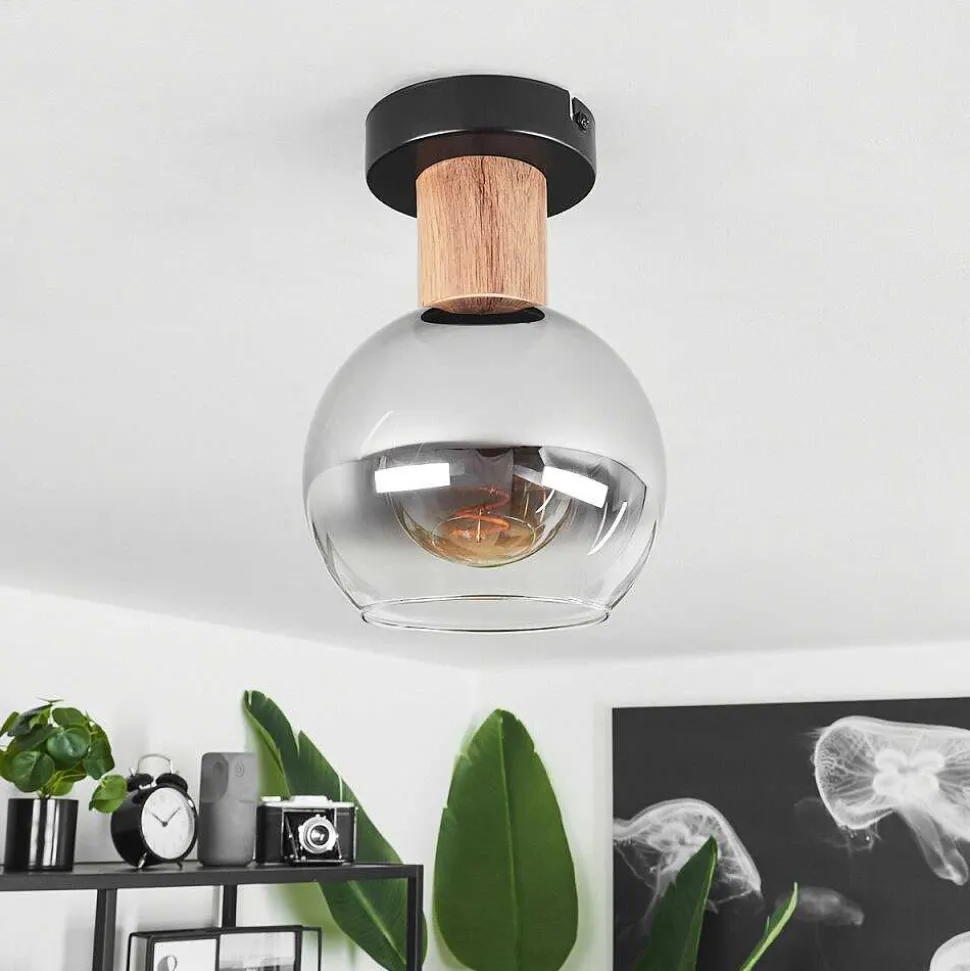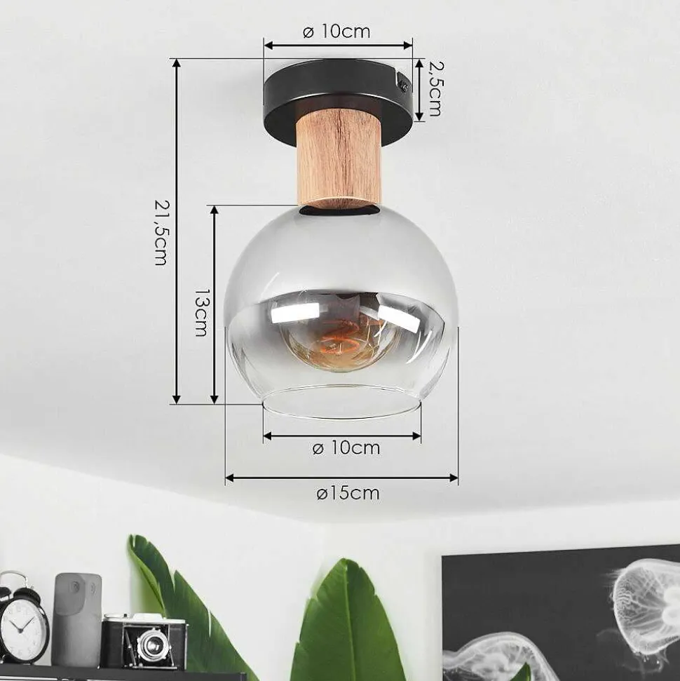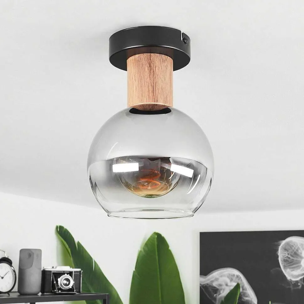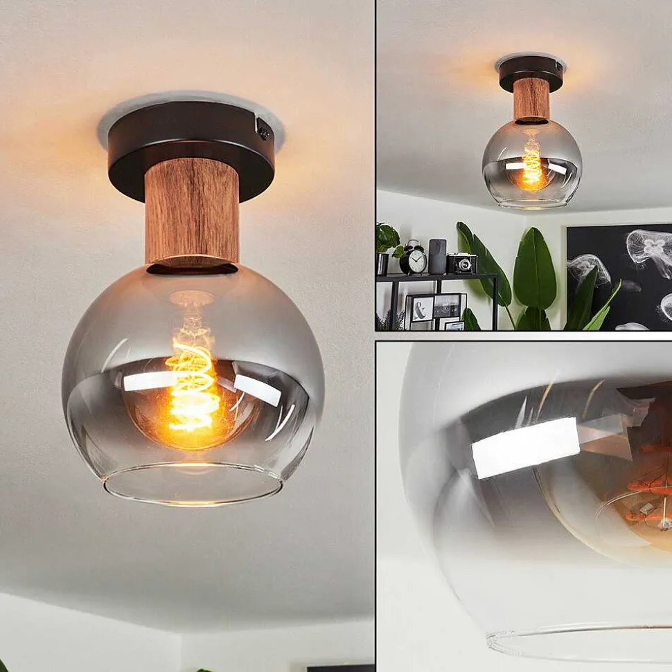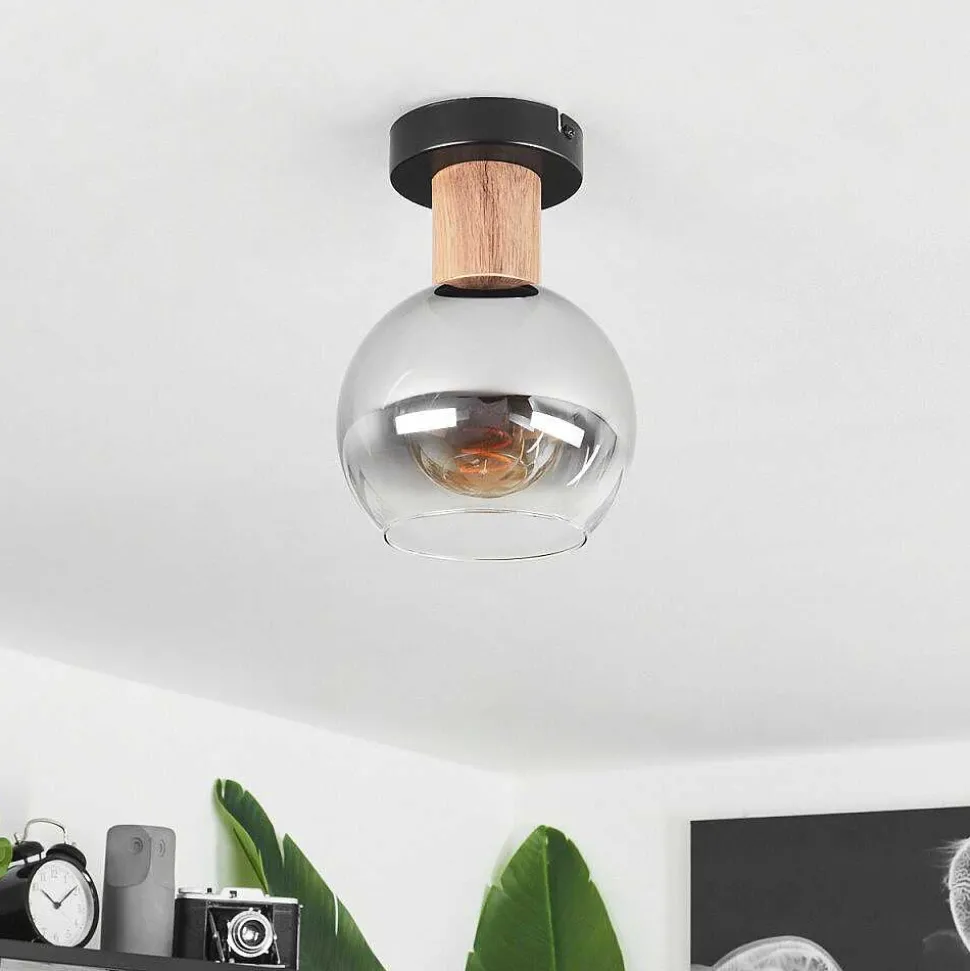 Plafonnier Vouhet Brun, Couleur Bois, Noir, 1 Lumiere