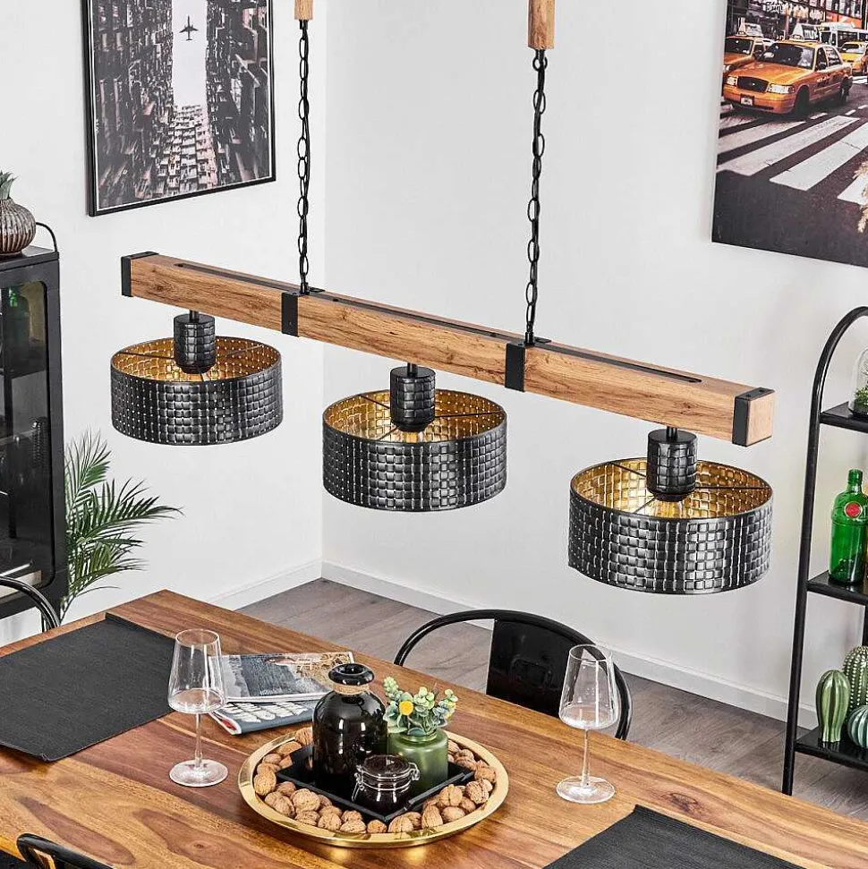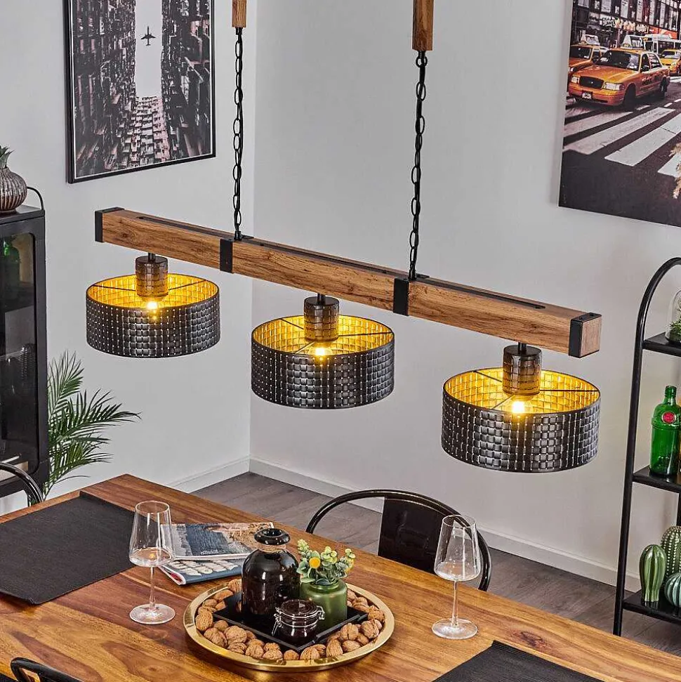 Plafonnier Salmi Led Brun, Couleur Bois, Noir, 1 Lumiere, Telecommandes
