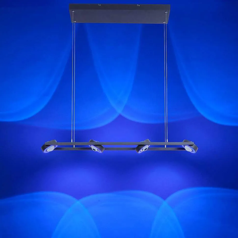 Plafonnier Paul Neuhaus Q-Marko Led Noir, 1 Lumiere, Telecommandes, Changeur De Couleurs