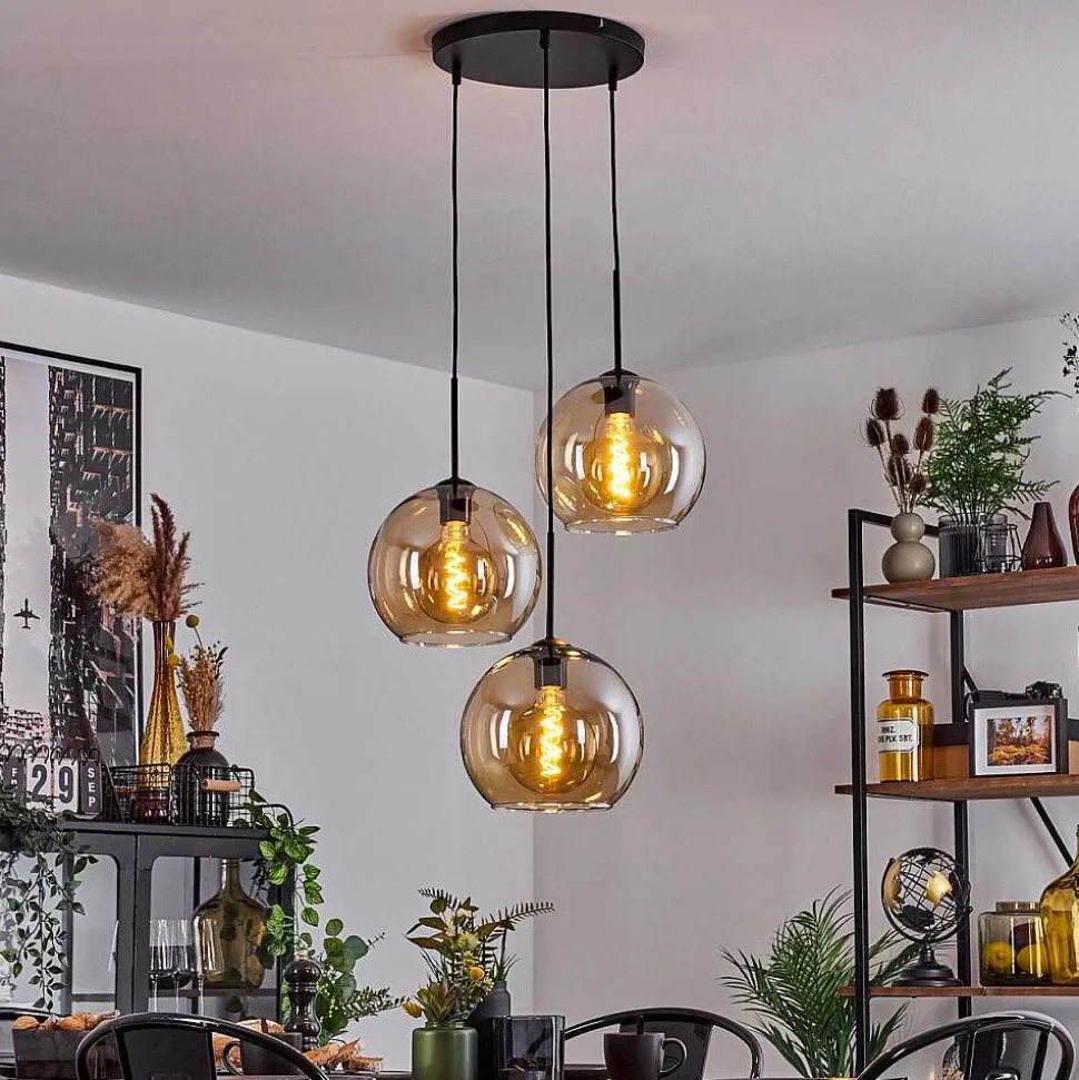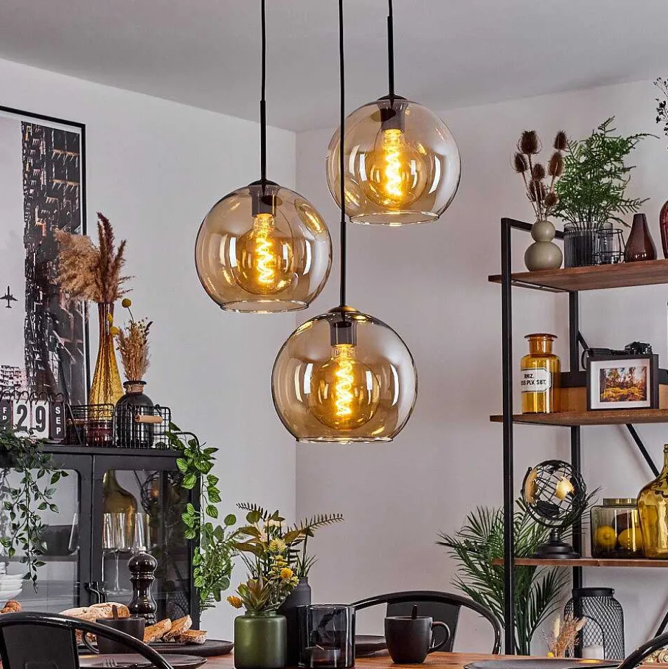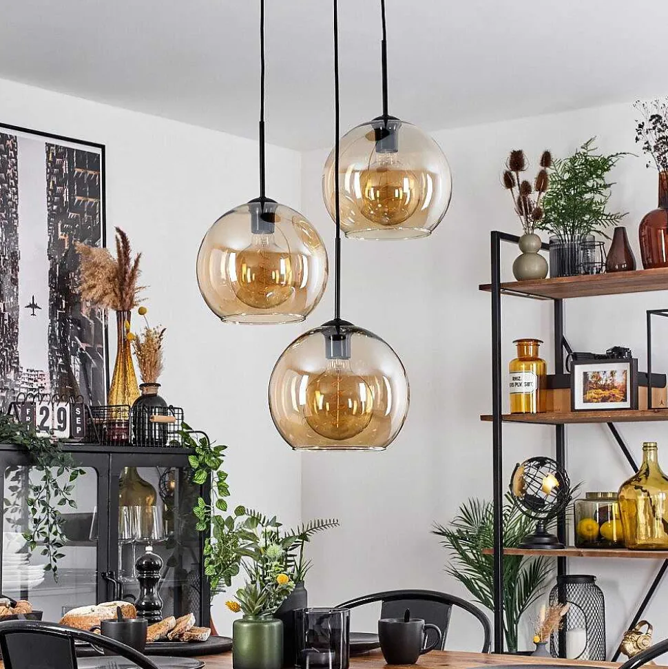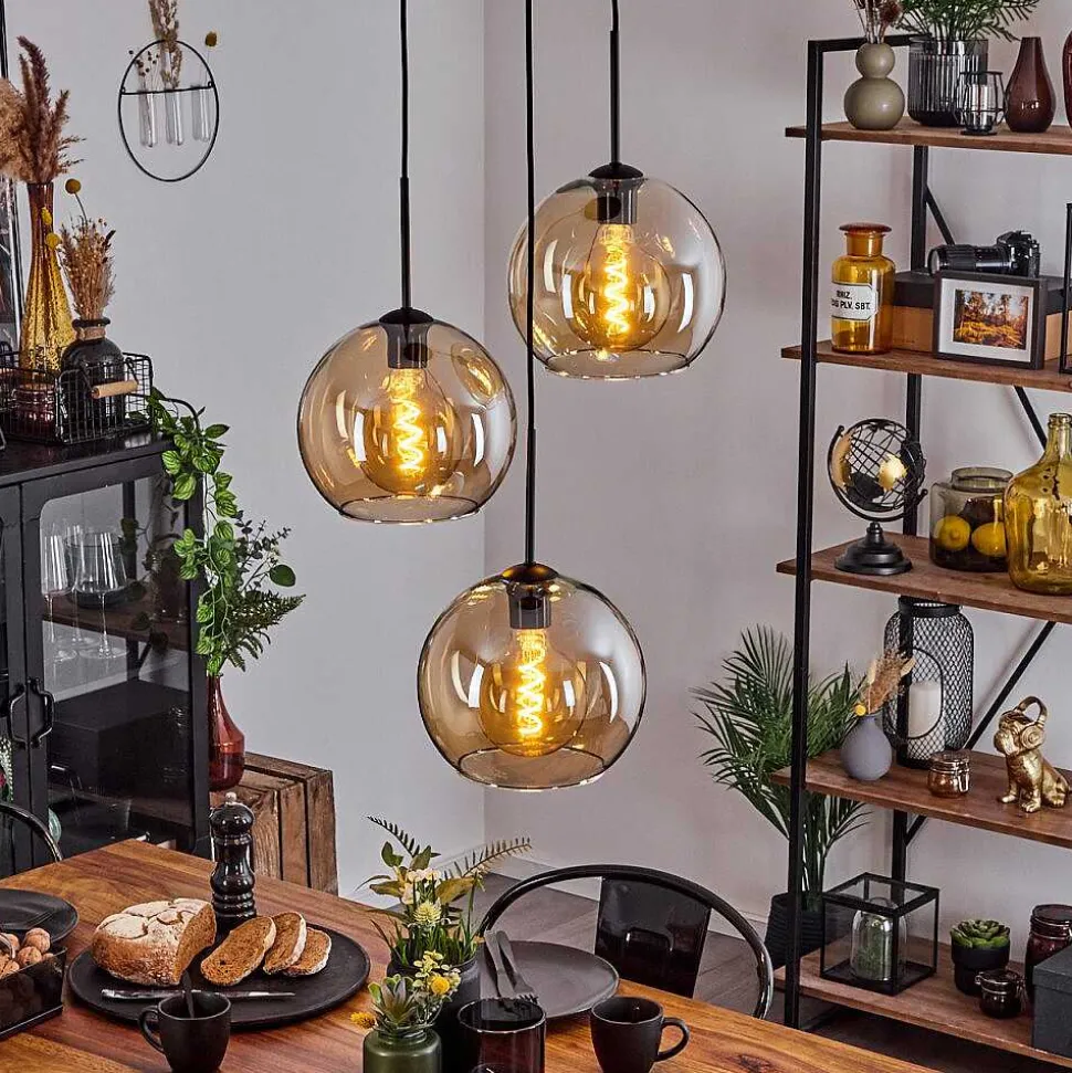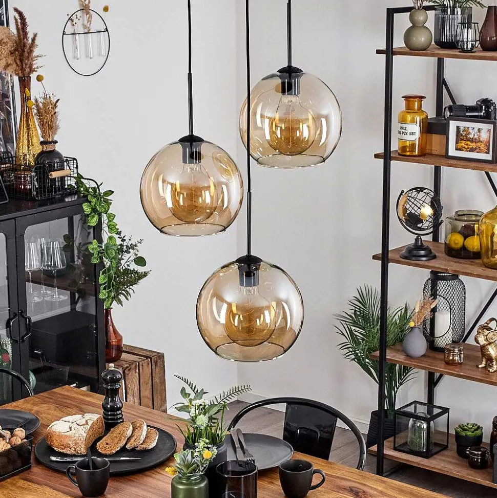 Suspension Verre 25 Cm Koyoto Ambre, 3 Lumieres
