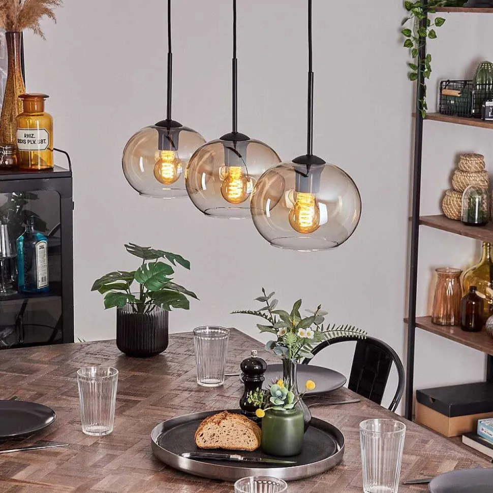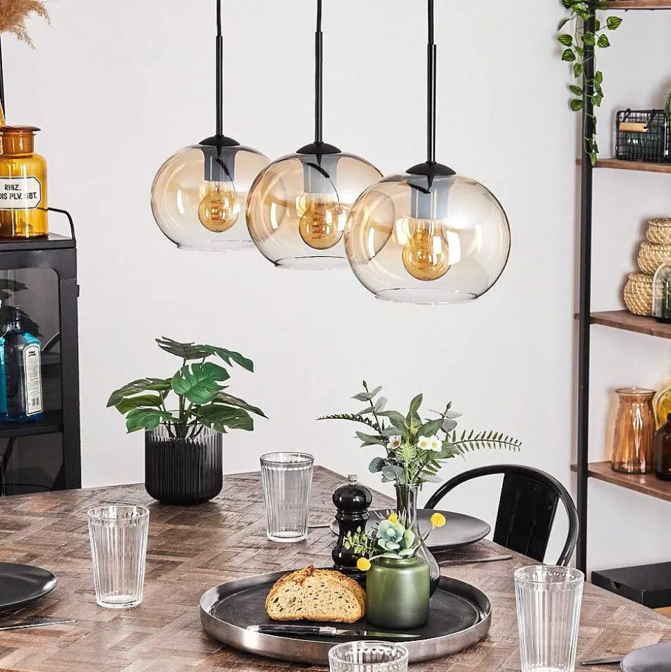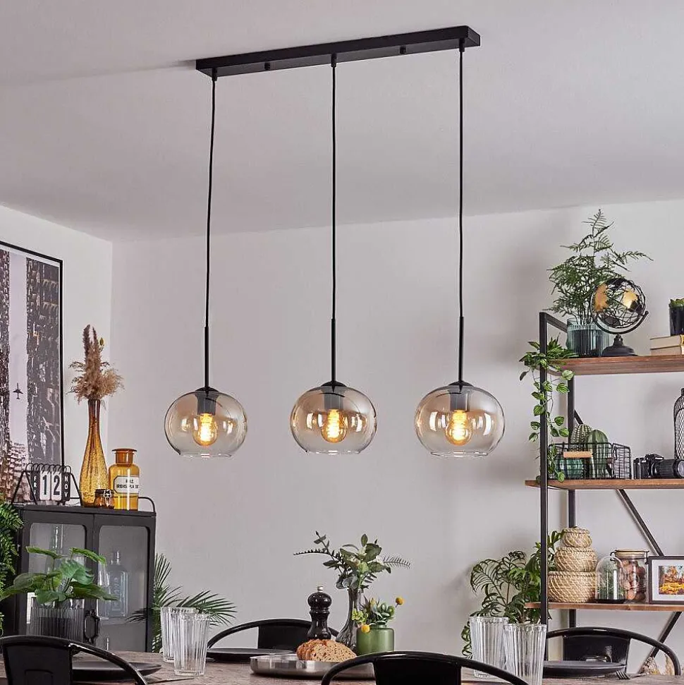 Plafonnier Salmi Led Brun, Couleur Bois, Noir, 1 Lumiere, Telecommandes