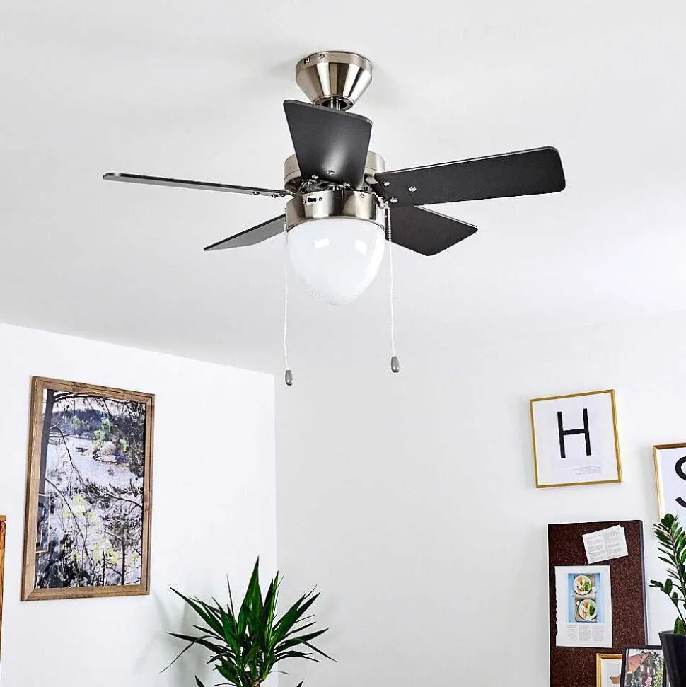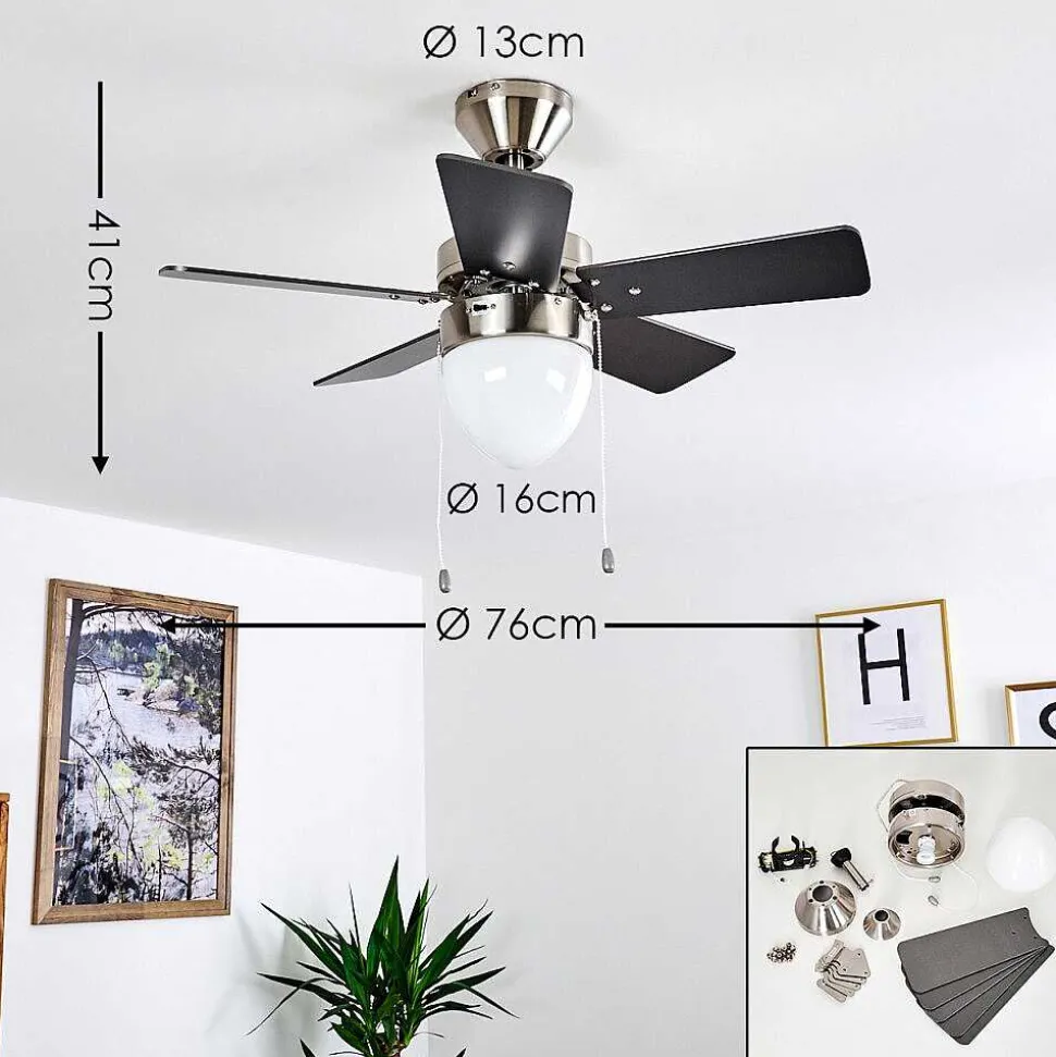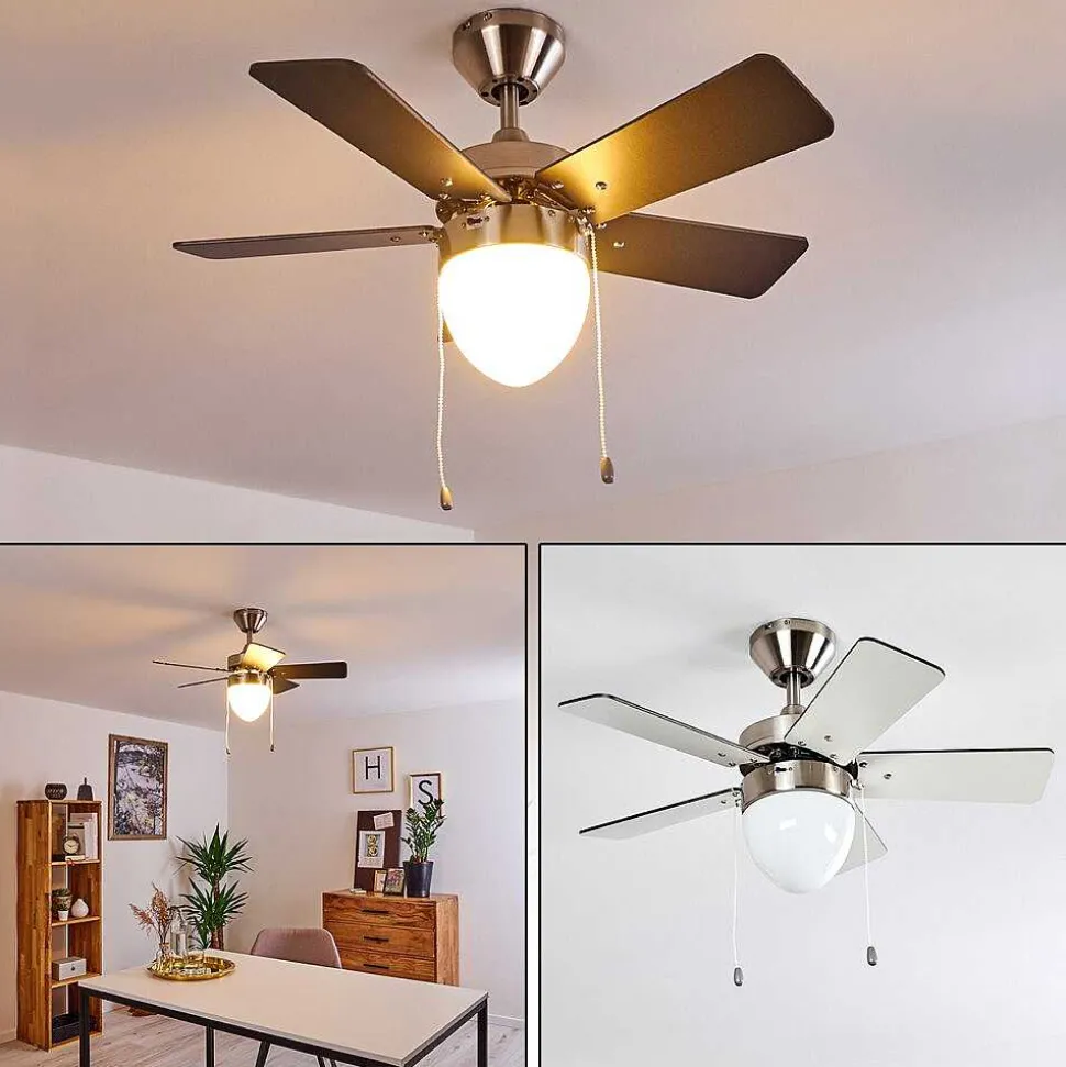 Ventilateur De Plafond Ellmau Chrome, Gris, Blanc, 1 Lumiere