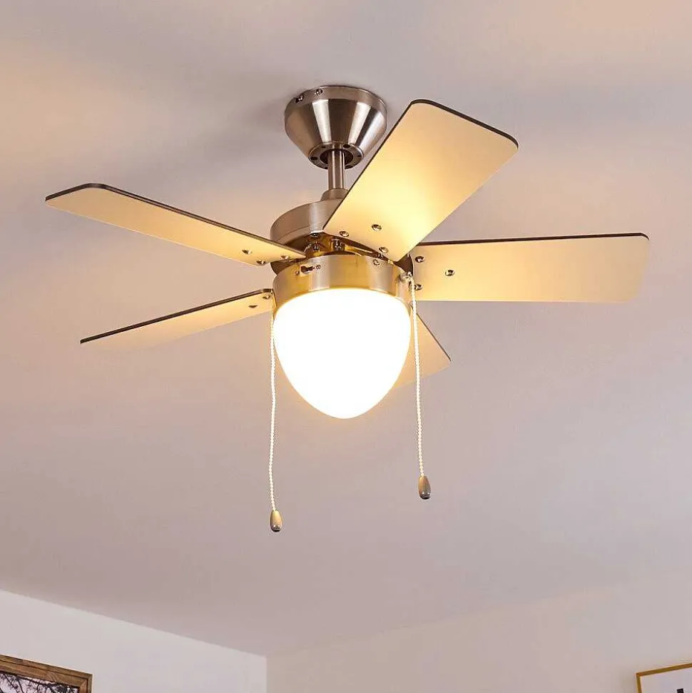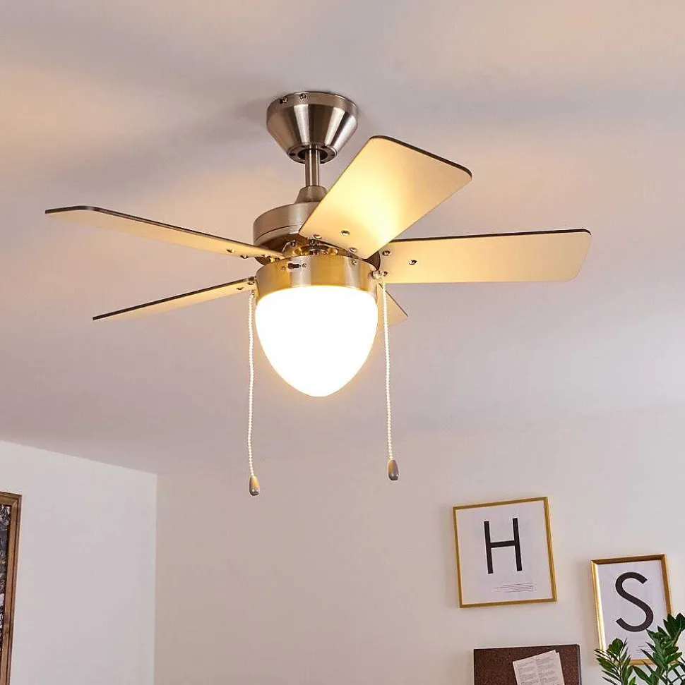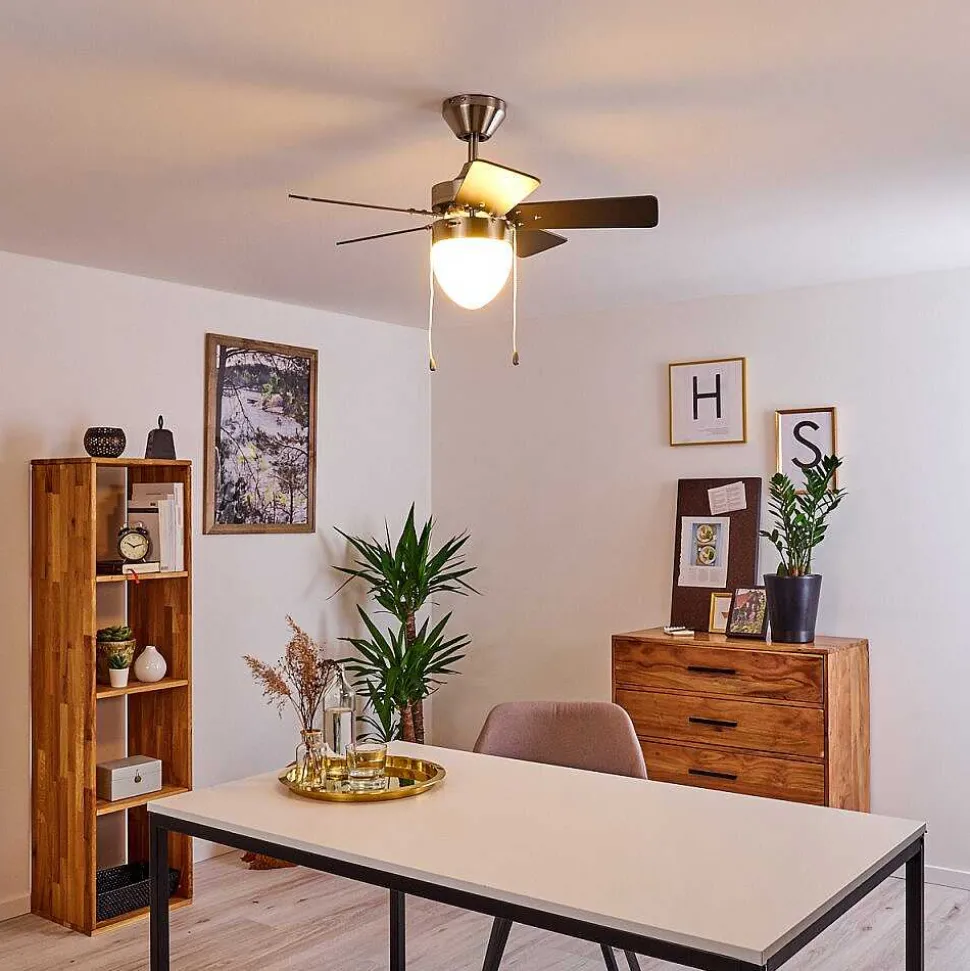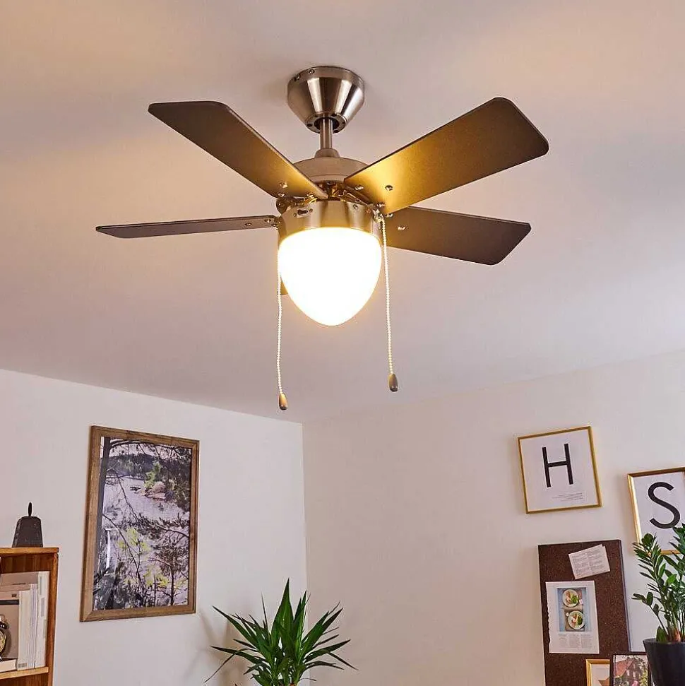 Ventilateur De Plafond Ellmau Chrome, Gris, Blanc, 1 Lumiere