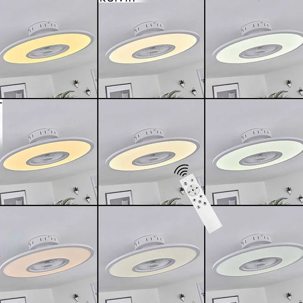 Ventilateur De Plafond Marmorta Led Blanc, 1 Lumiere, Telecommandes