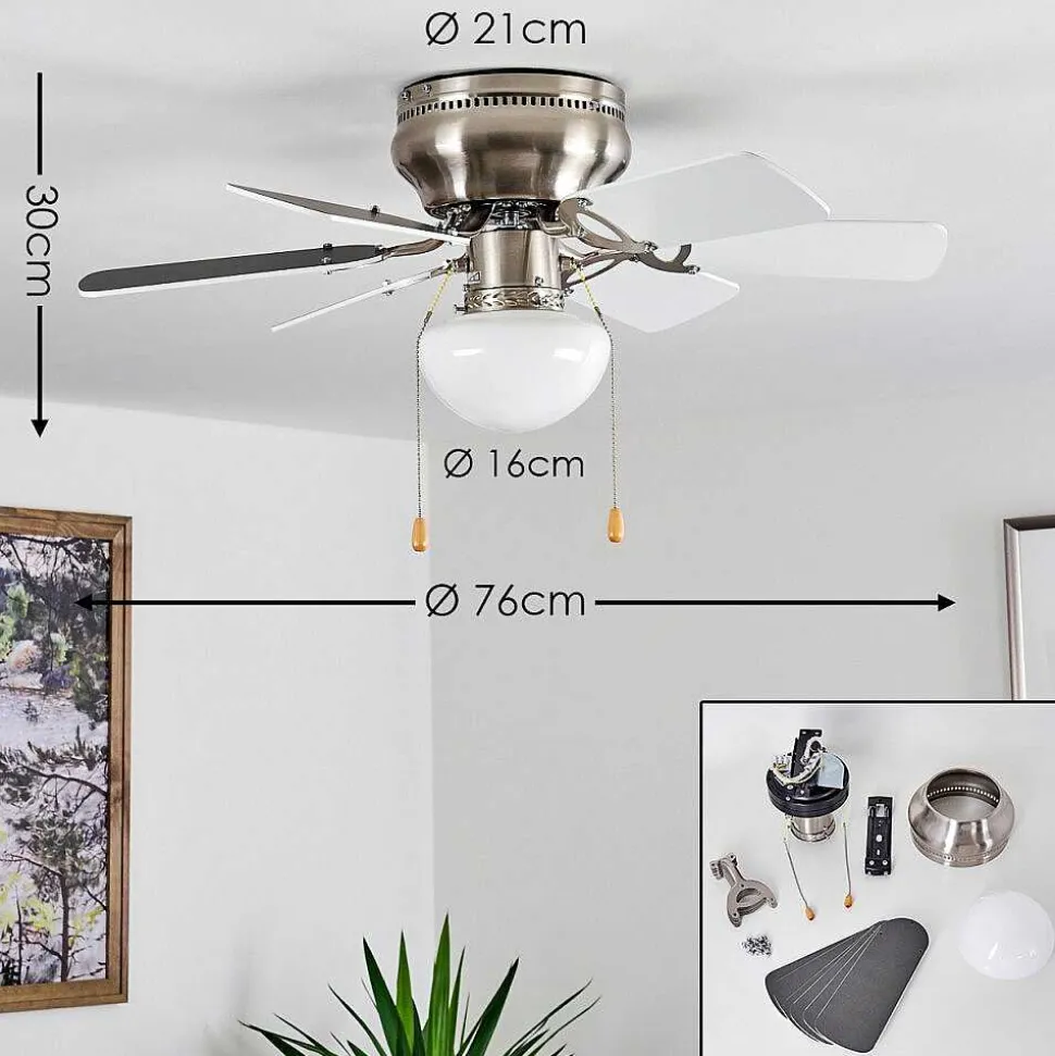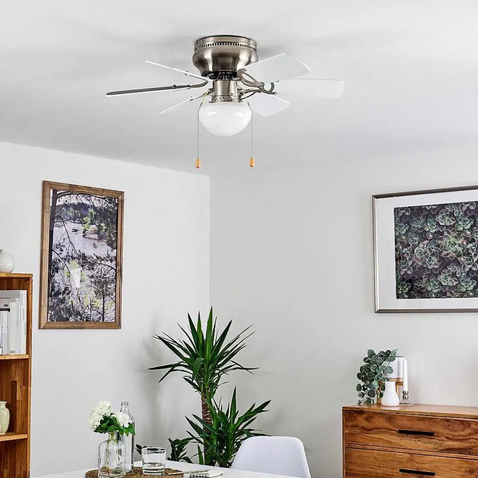 Ventilateur De Plafond Trillo Gris, Nickel Mat, Blanc, 1 Lumiere