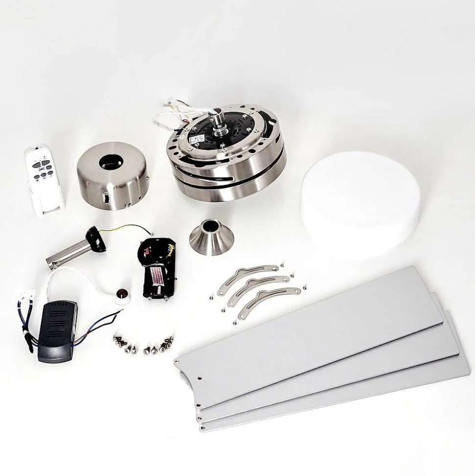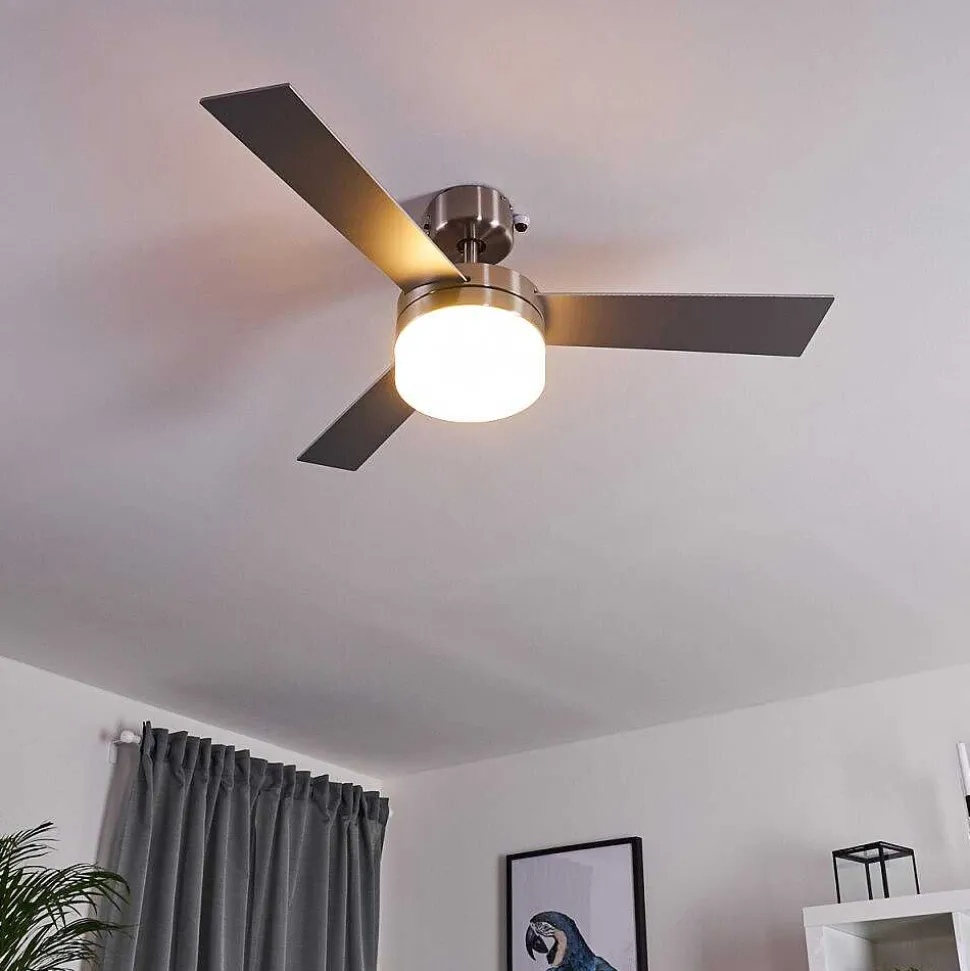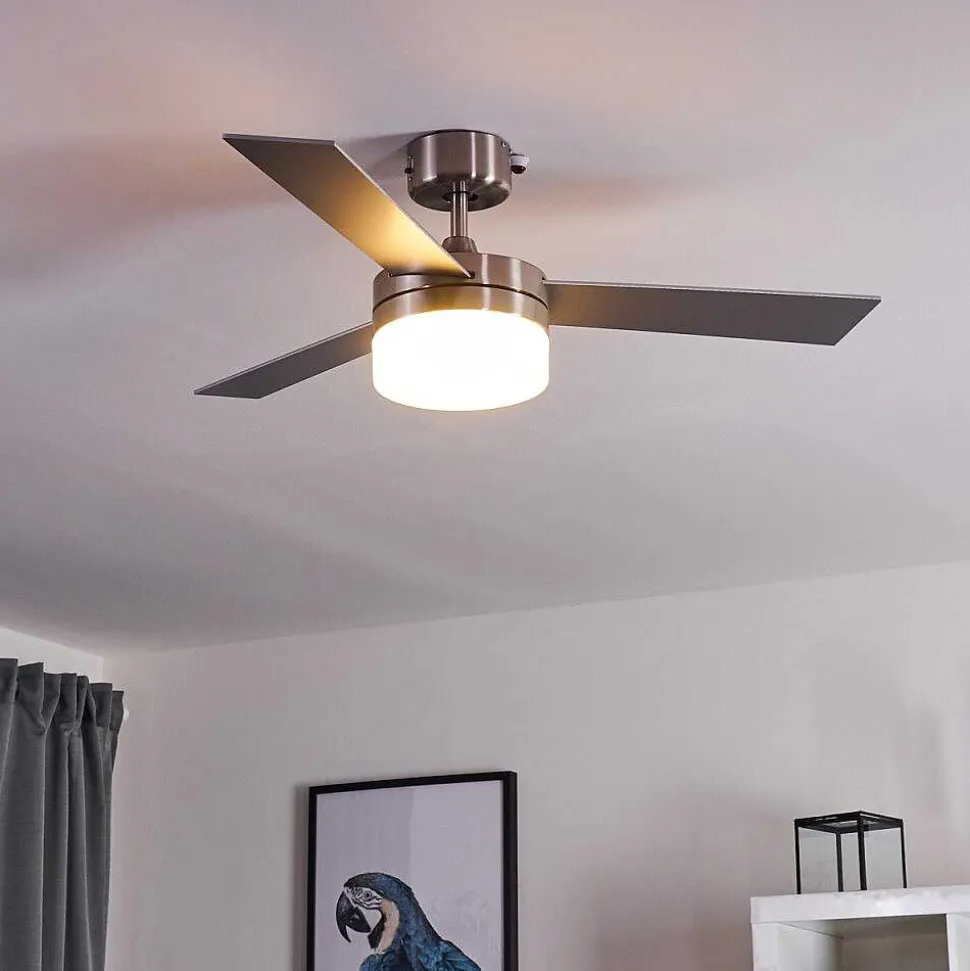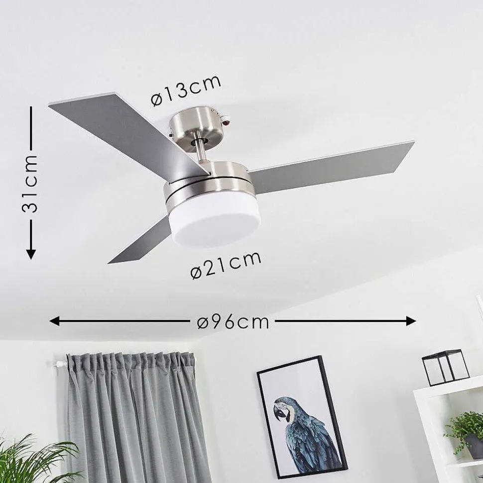 Ventilateur De Plafond Vevey Bois Clair, Nickel Mat, Argente, 2 Lumieres, Telecommandes