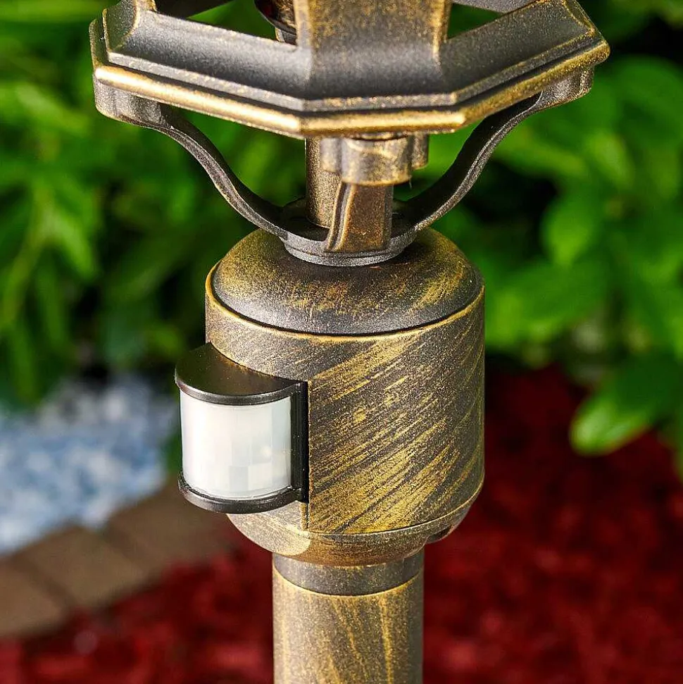 Lampadaire Exterieur Lentua Brun Dore, 1 Lumiere, Detecteur De Mouvement