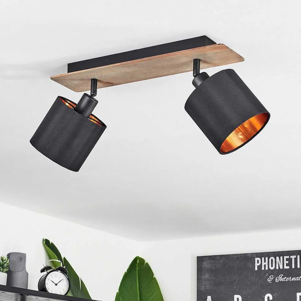 Plafonnier Salmi Led Couleur Bois, Noir, Blanc, 1 Lumiere, Telecommandes
