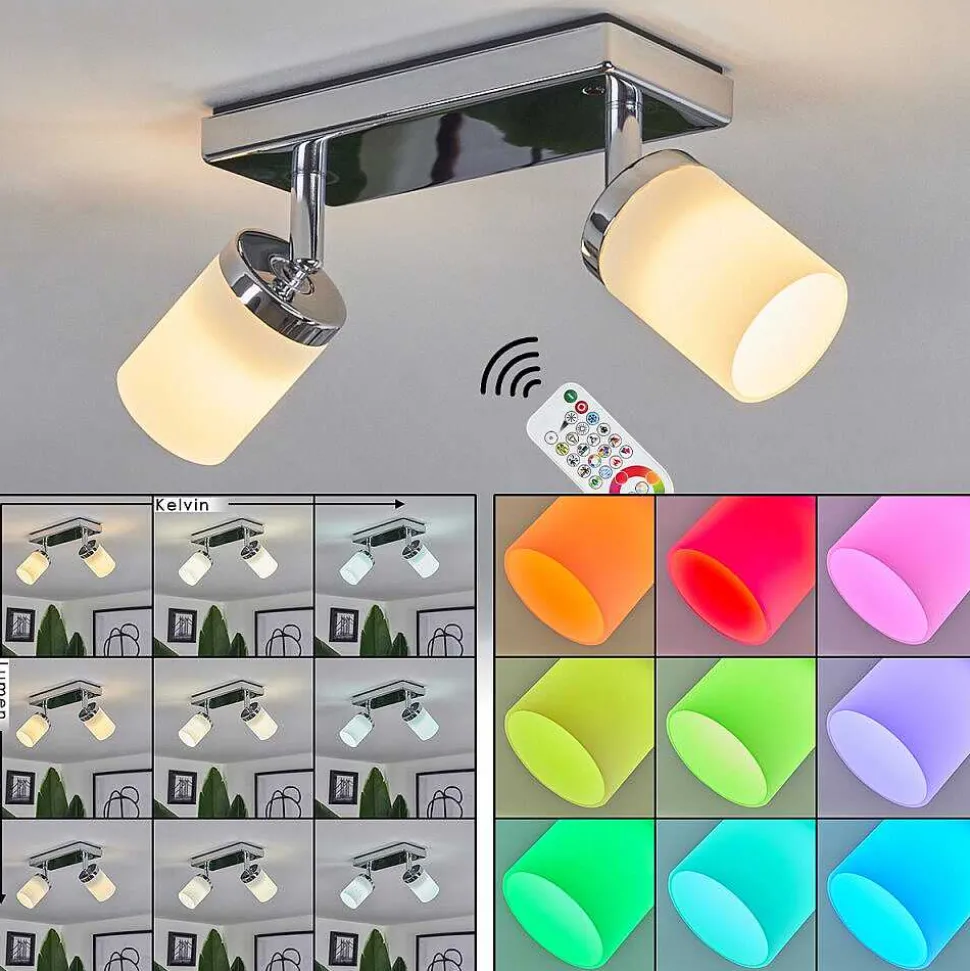 Plafonnier Auxerre Led Blanc, 2 Lumieres, Telecommandes, Changeur De Couleurs