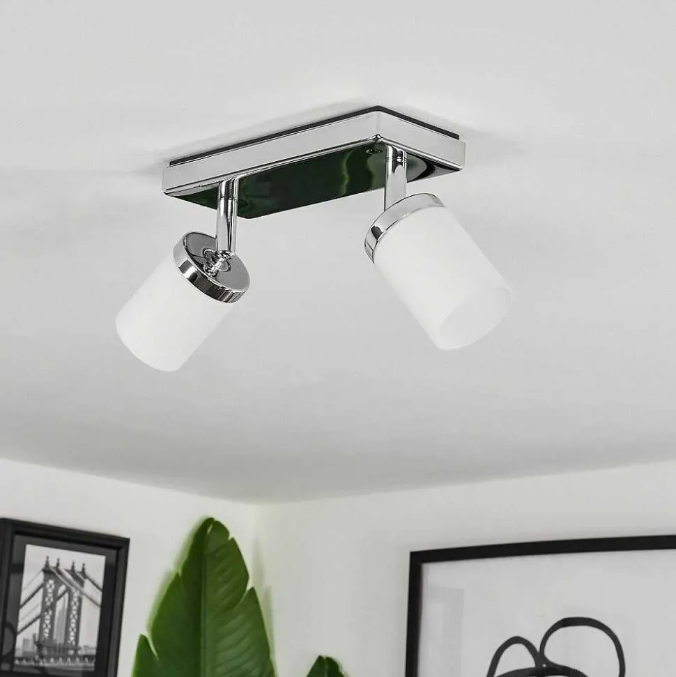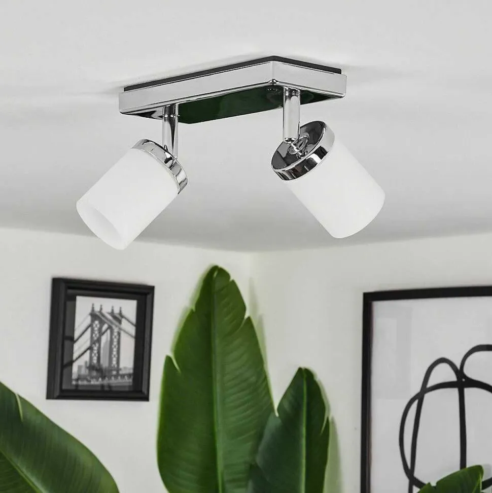 Plafonnier Roseto Led Chrome, Transparent, Blanc, 1 Lumiere, Telecommandes