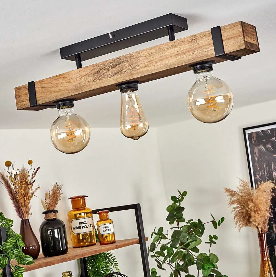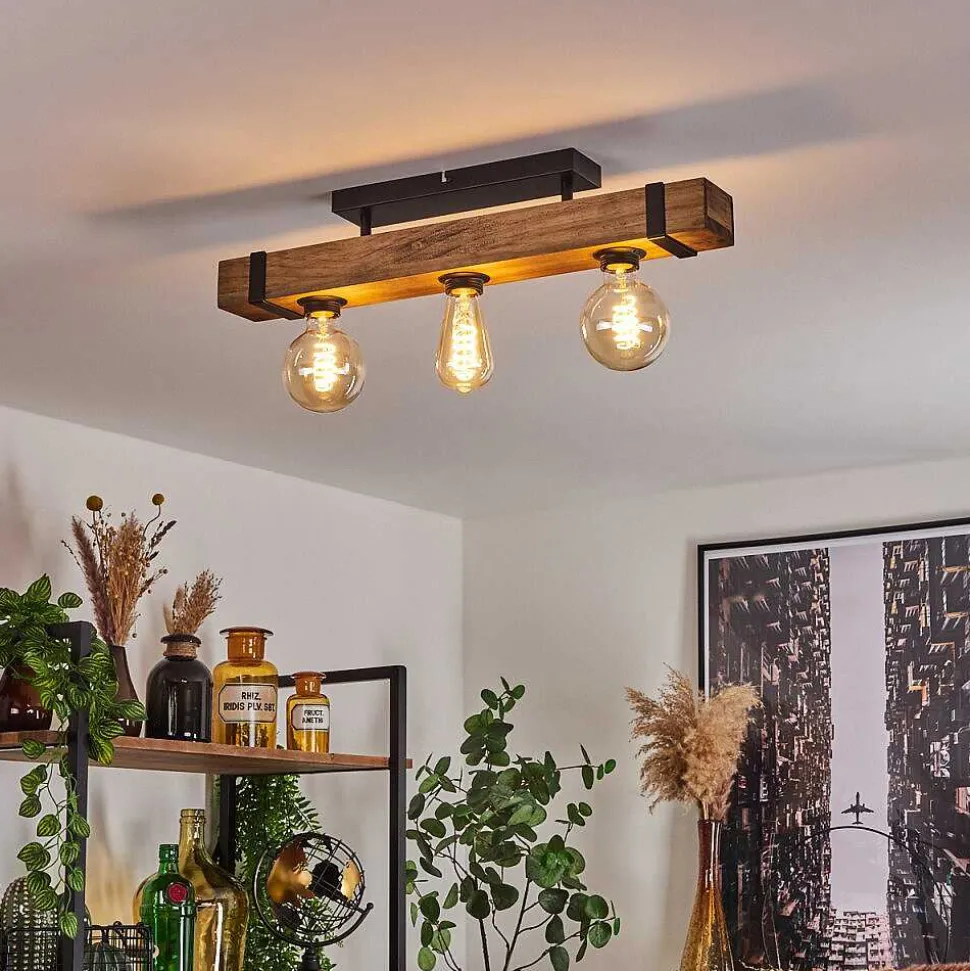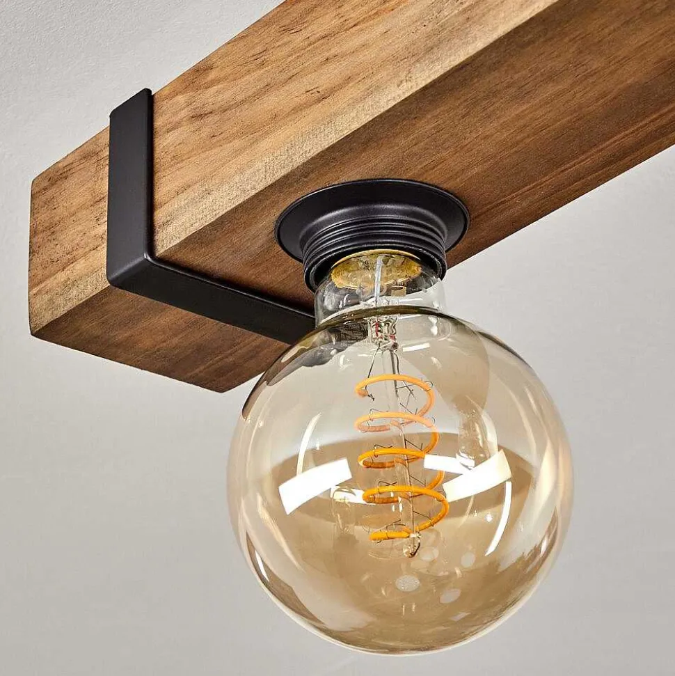 Plafonnier Salmi Led Brun, Couleur Bois, Noir, 1 Lumiere, Telecommandes