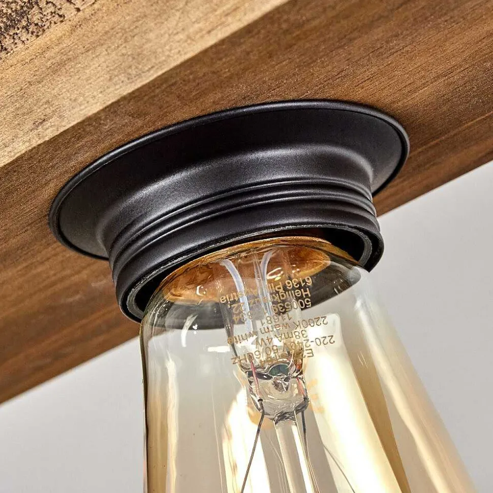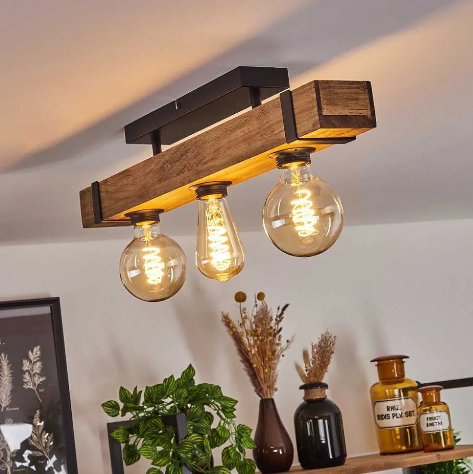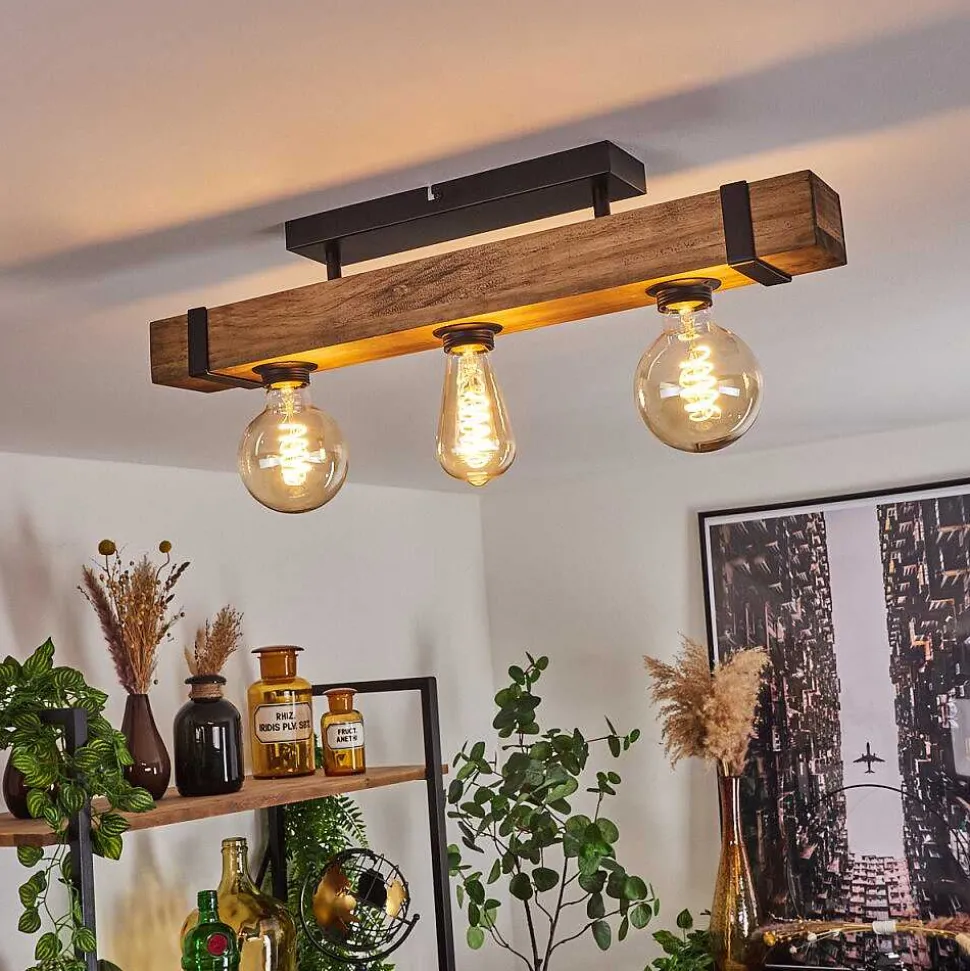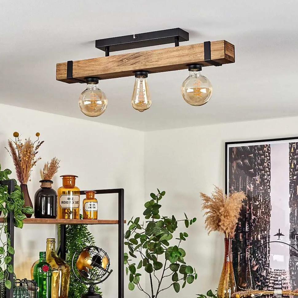 Plafonnier Salmi Led Brun, Couleur Bois, Noir, 1 Lumiere, Telecommandes