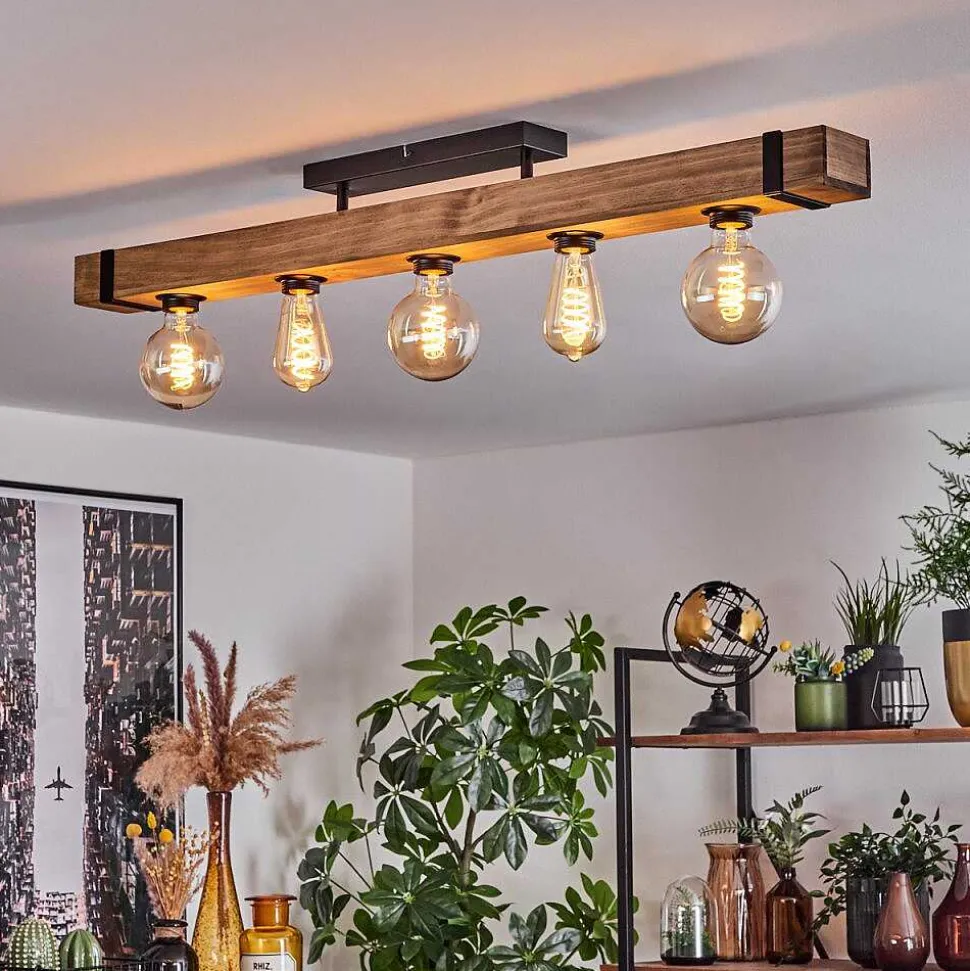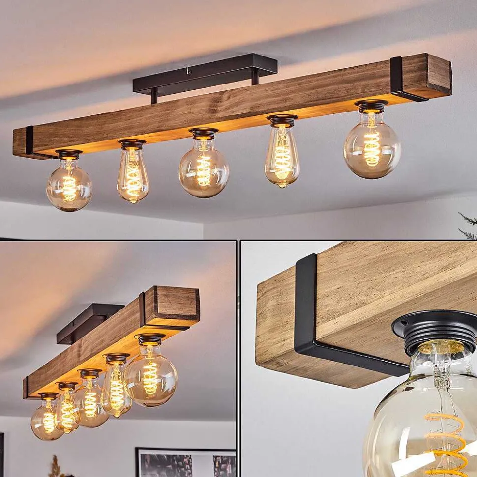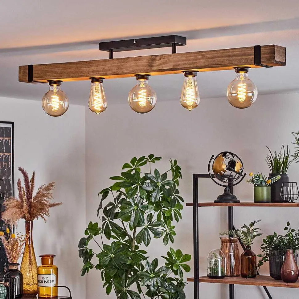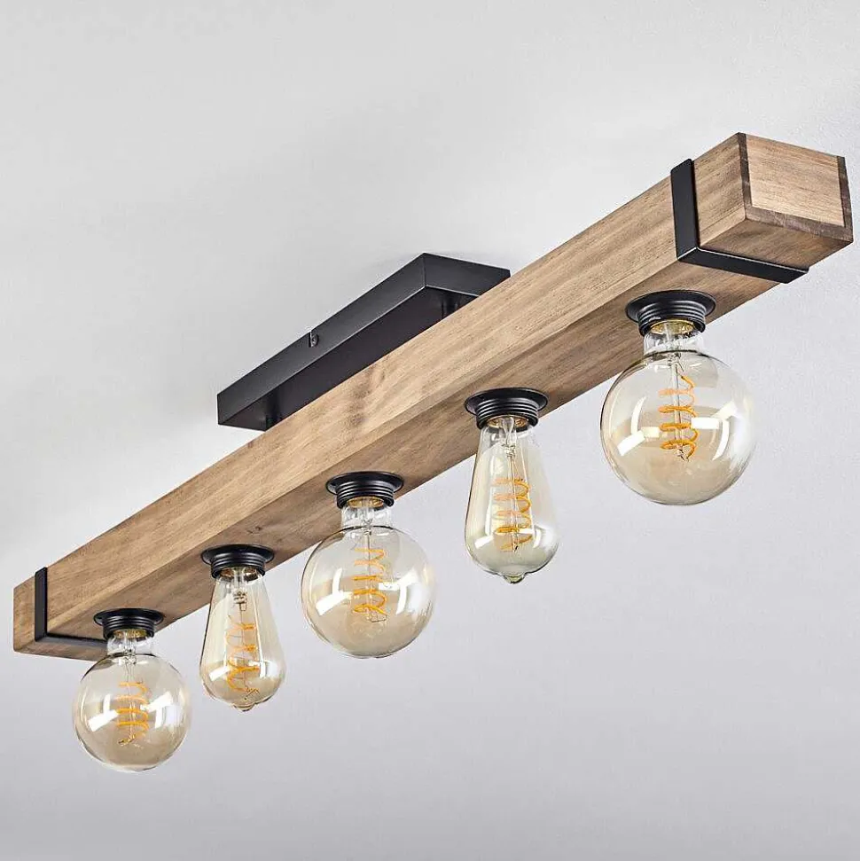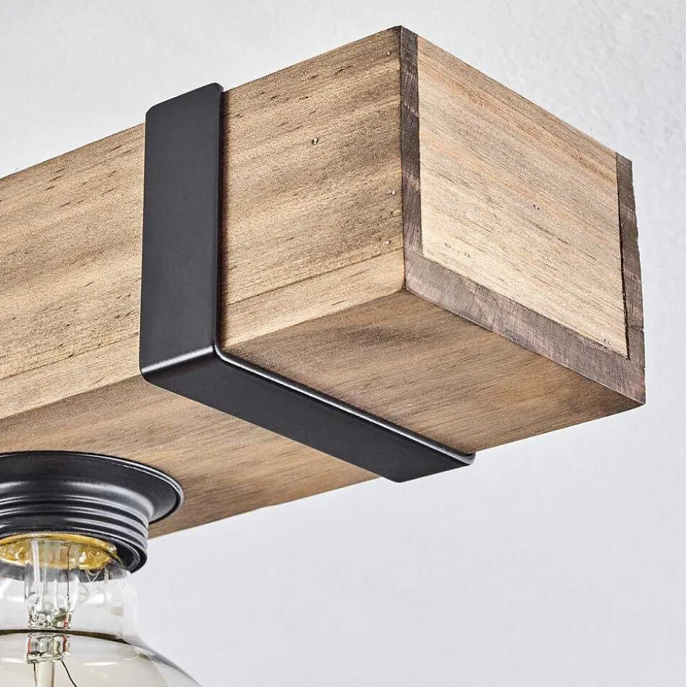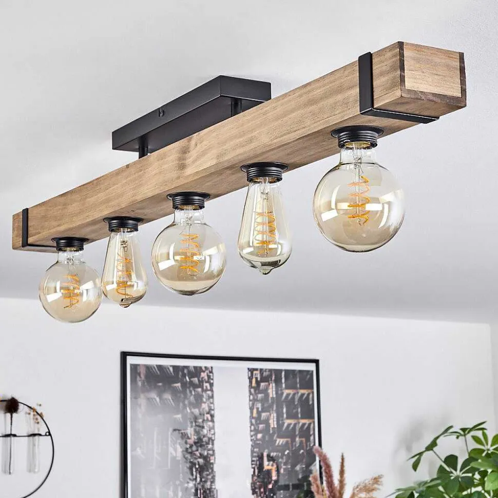 Plafonnier Salmi Led Brun, Couleur Bois, Noir, 1 Lumiere, Telecommandes