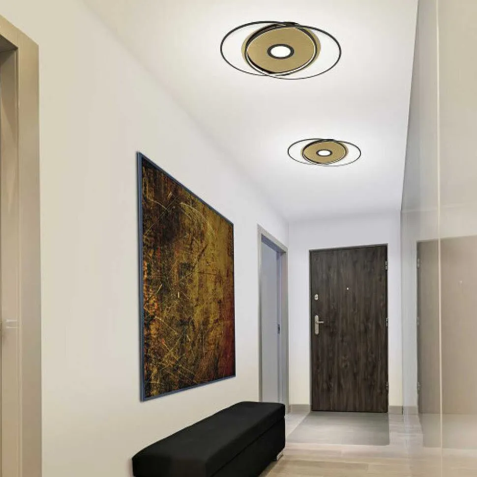 Plafonnier Paul Neuhaus Q-Amy Led Acier Inoxydable, 2 Lumieres, Telecommandes