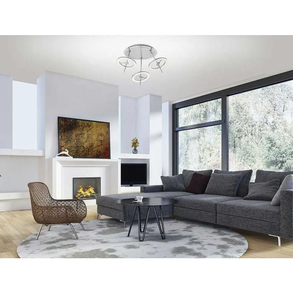 Suspension Paul-Neuhaus Q-Etienne Led Acier Brosse, 4 Lumieres, Telecommandes