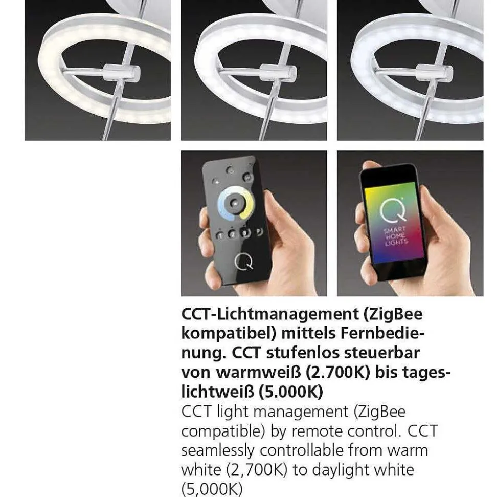 Lampadaire Paul-Neuhaus Q-Vito Led Acier Brosse, 3 Lumieres, Telecommandes