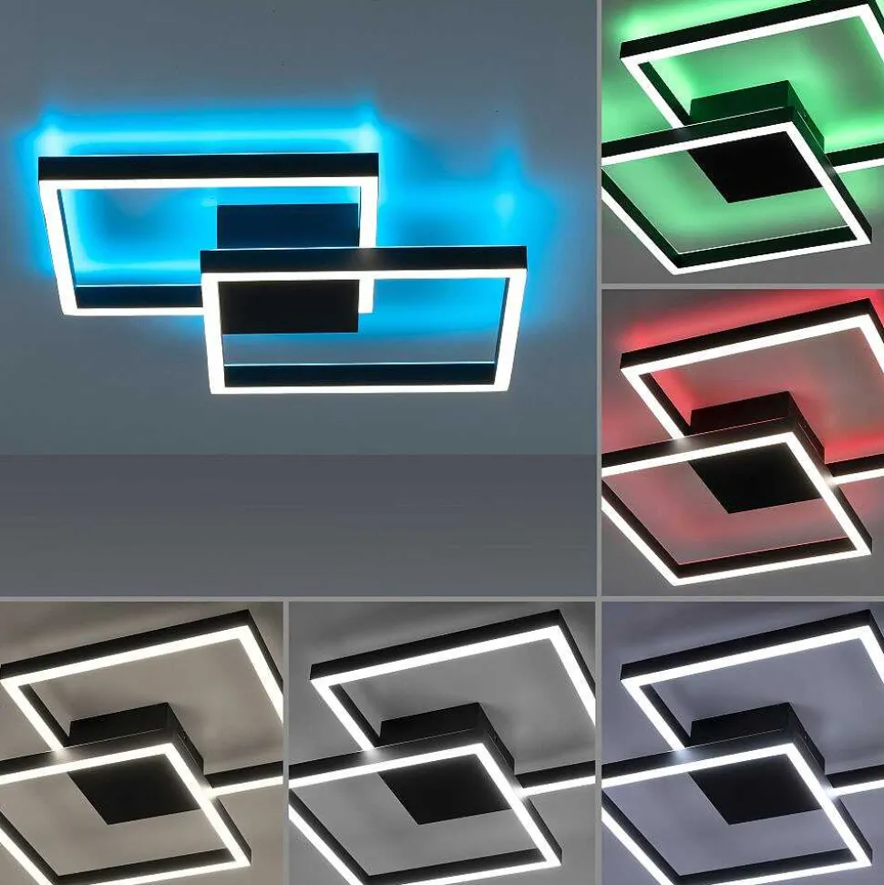 Plafonnier Paul Neuhaus Q-Inigo Led Acier Inoxydable, 2 Lumieres, Telecommandes