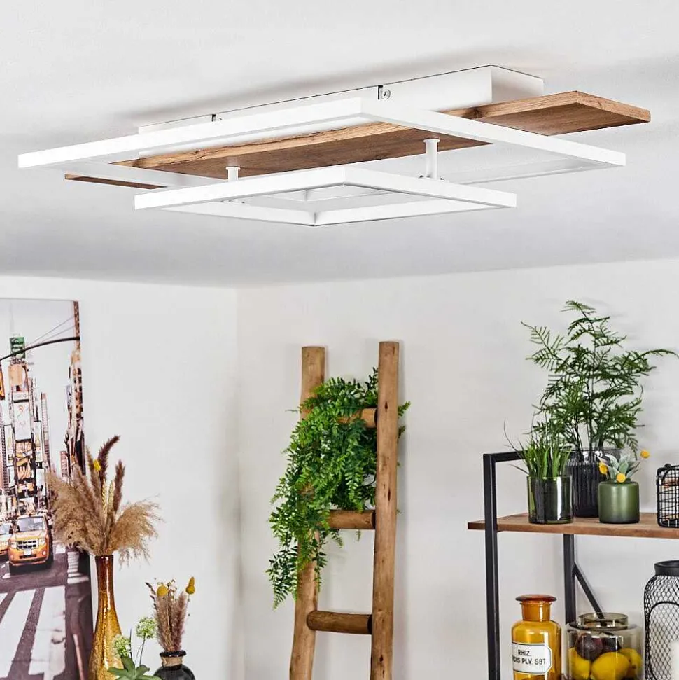 Plafonnier Salmi Led Brun, Couleur Bois, Noir, 1 Lumiere, Telecommandes