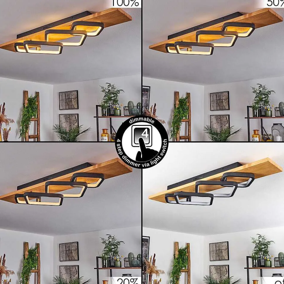 Plafonnier Salmi Led Brun, Couleur Bois, Noir, 1 Lumiere, Telecommandes