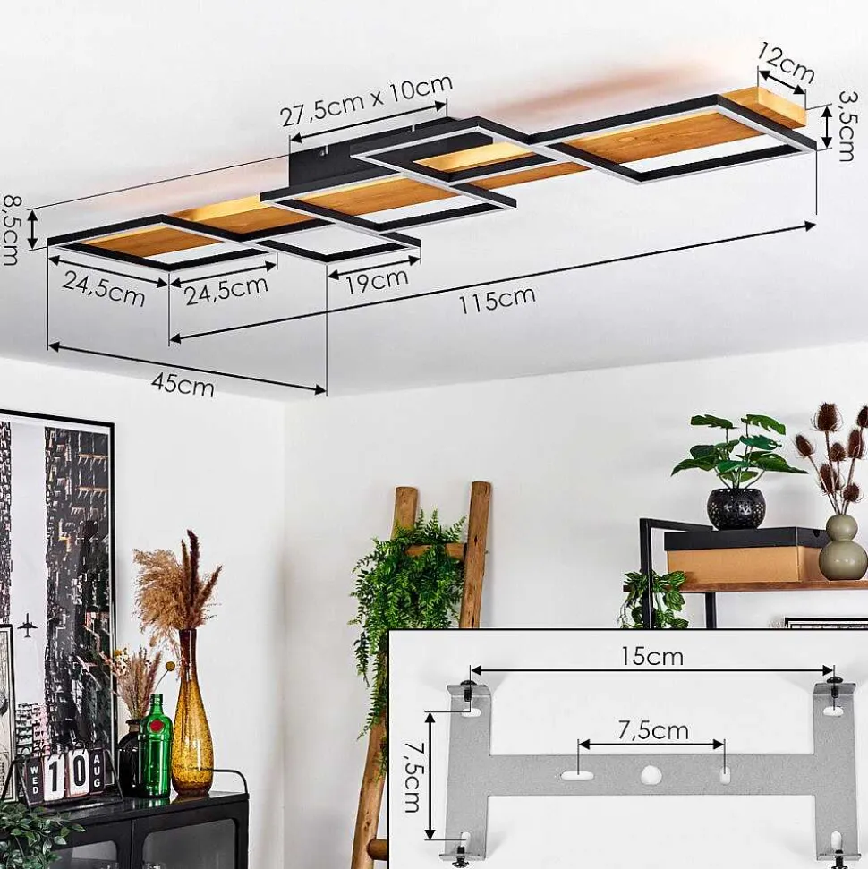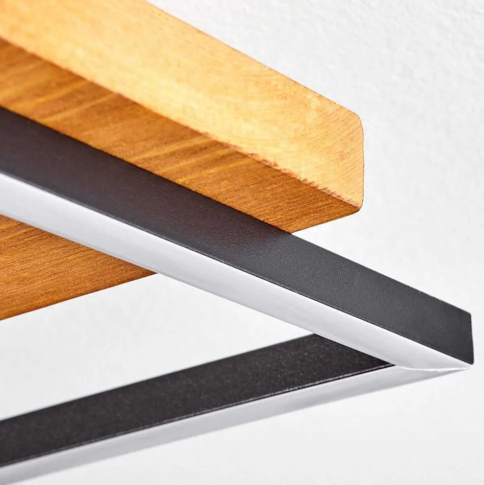 Plafonnier Salmi Led Brun, Couleur Bois, Noir, 1 Lumiere, Telecommandes