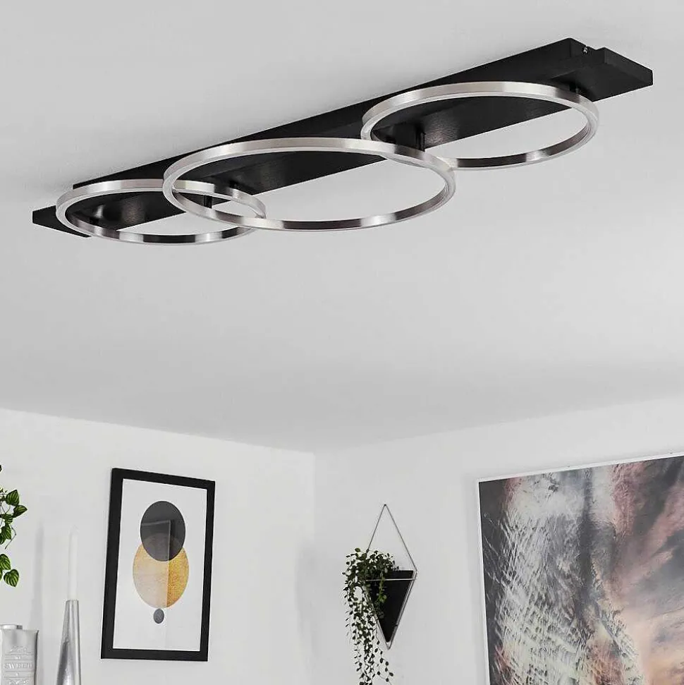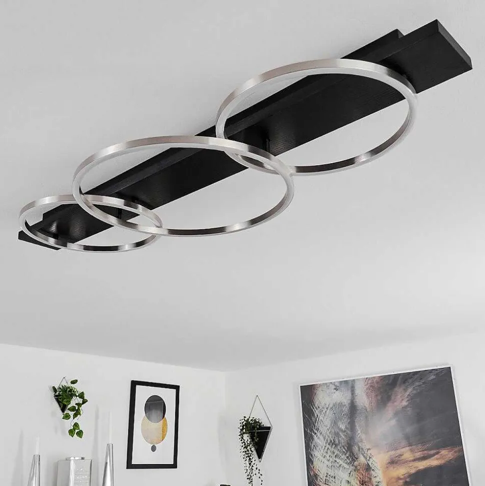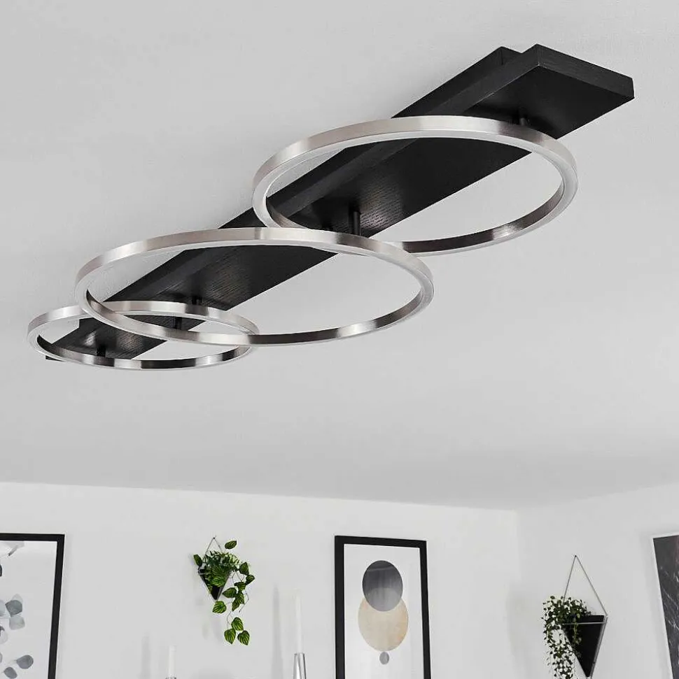 Plafonnier Salmi Led Brun, Couleur Bois, Noir, 1 Lumiere, Telecommandes