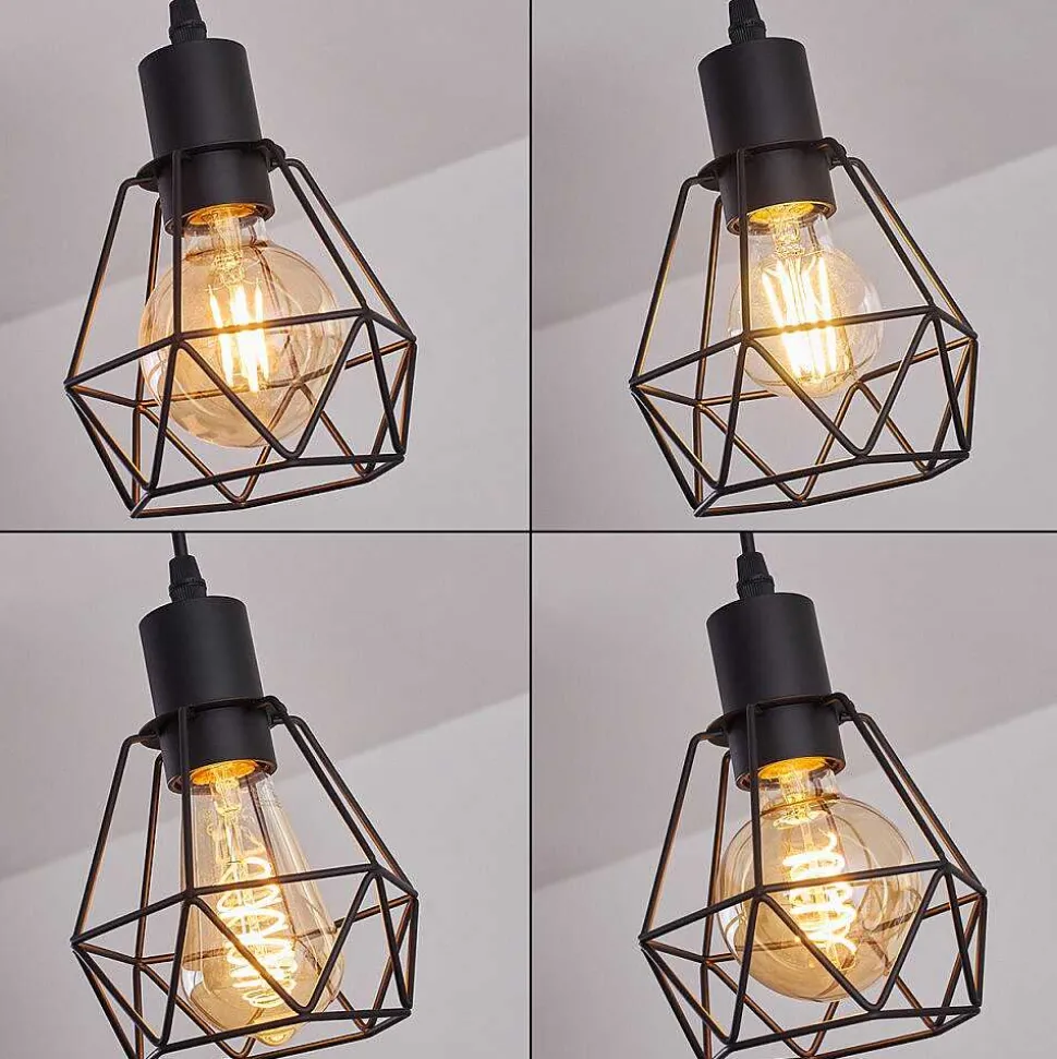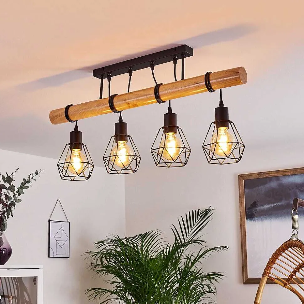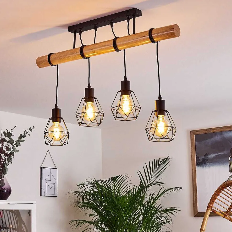 Plafonnier Yaak Bois Clair, Noir, 4 Lumieres